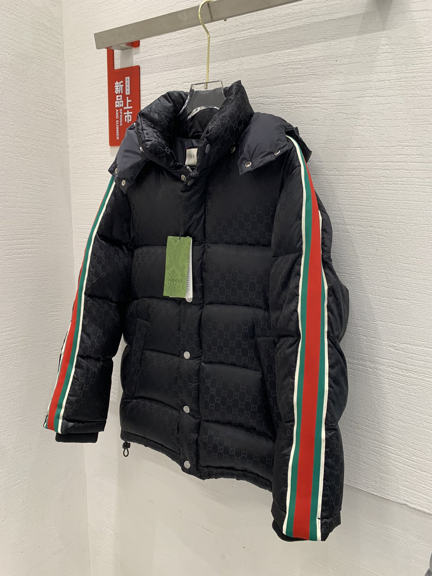 This stylish down jacket features a double G color-blocked design with the iconic GG logo throughout. Part of the refreshed accessories and ready-to-wear collection, this zip-up down jacket is crafted from recycled nylon, utilizing recyclable sewing threads and accessories, showcasing the brand’s commitment to sustainability.