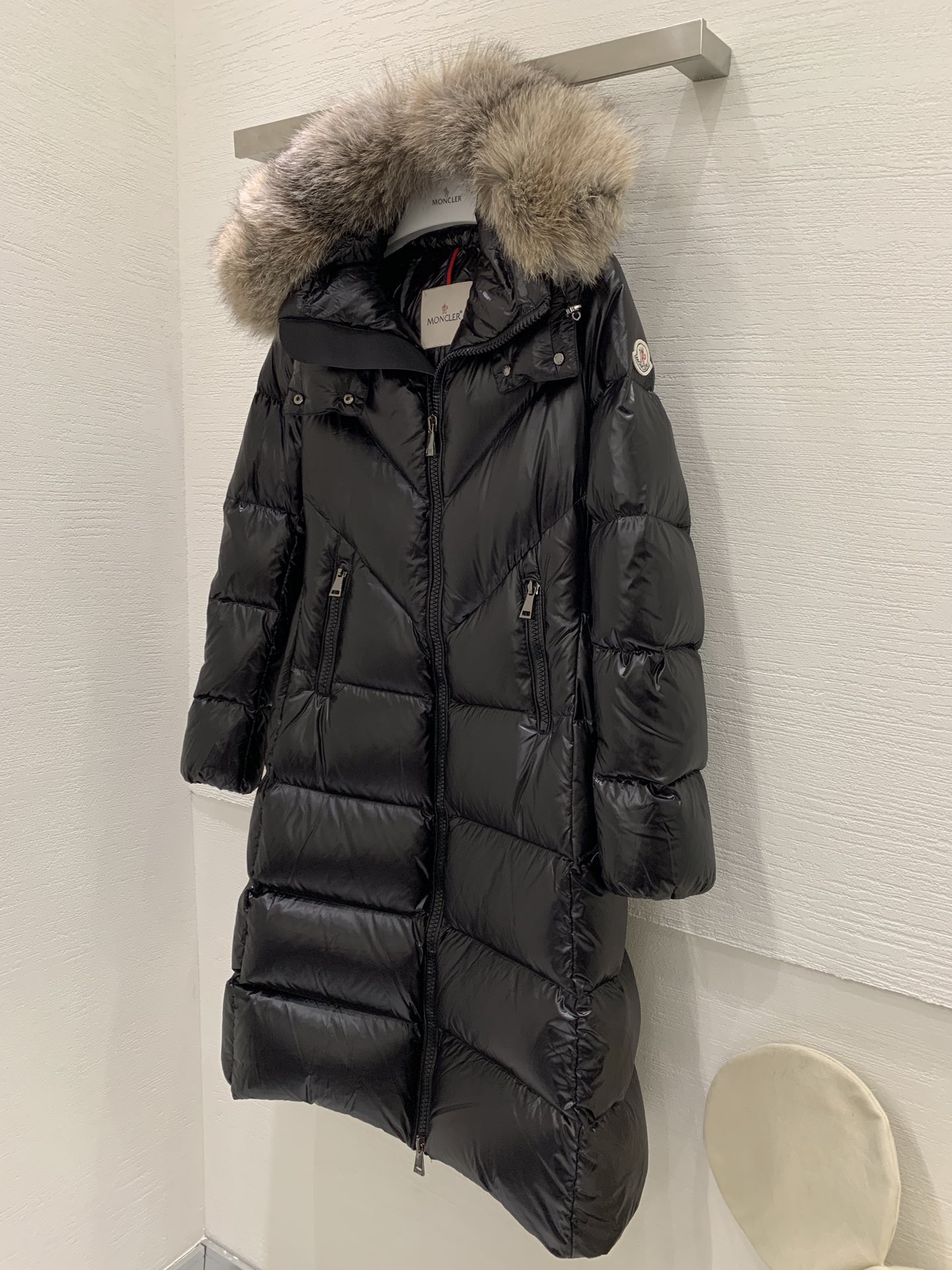 Moncler Women’s Long Down Jacket with Fur Hood Black