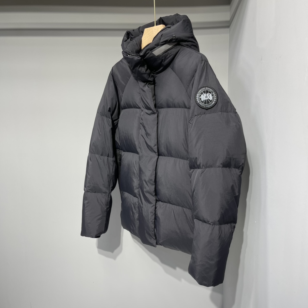 Canada Goose Fall/Winter Short Thick Women’s Down Jacket, Junction Black Label. This stylish hooded down jacket features 3D embroidered logos on the sleeves, combining fashion and function!