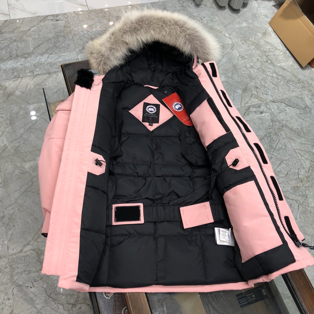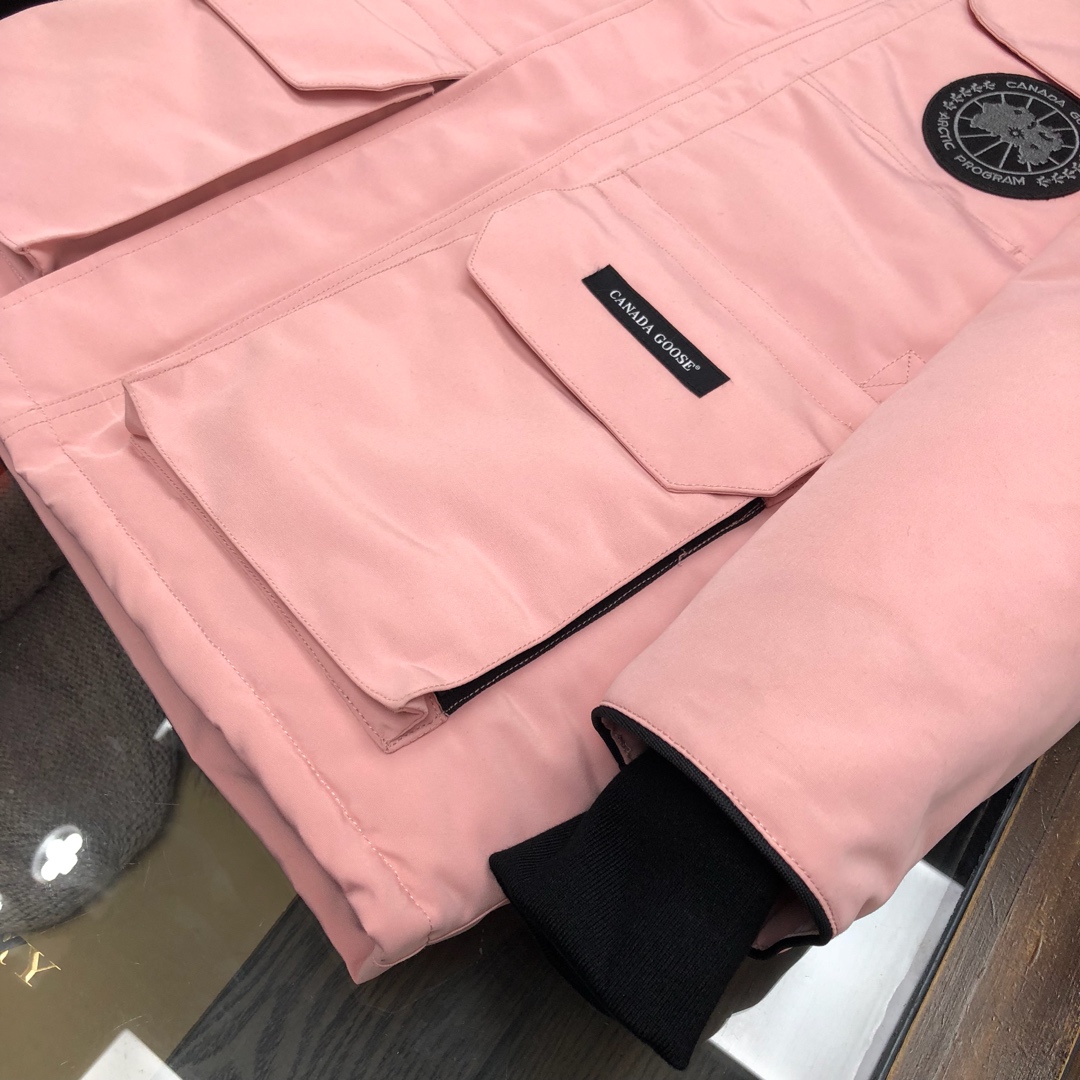 The fabric is made of high-density, nano-grade waterproof material, making it windproof and wear-resistant, with a certain thickness! The zipper is from YKK, the exclusive brand for Canada Goose, featuring a smooth double-sided design.