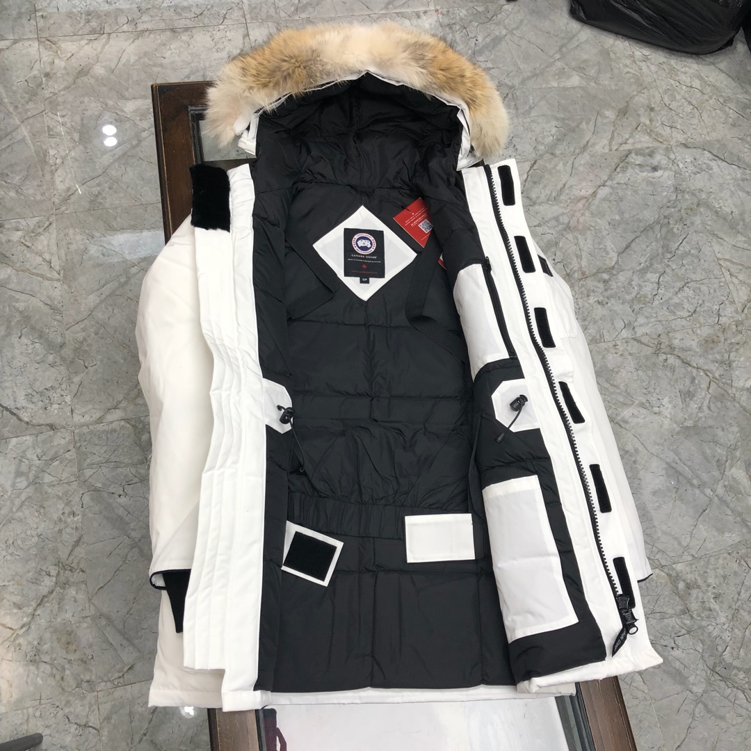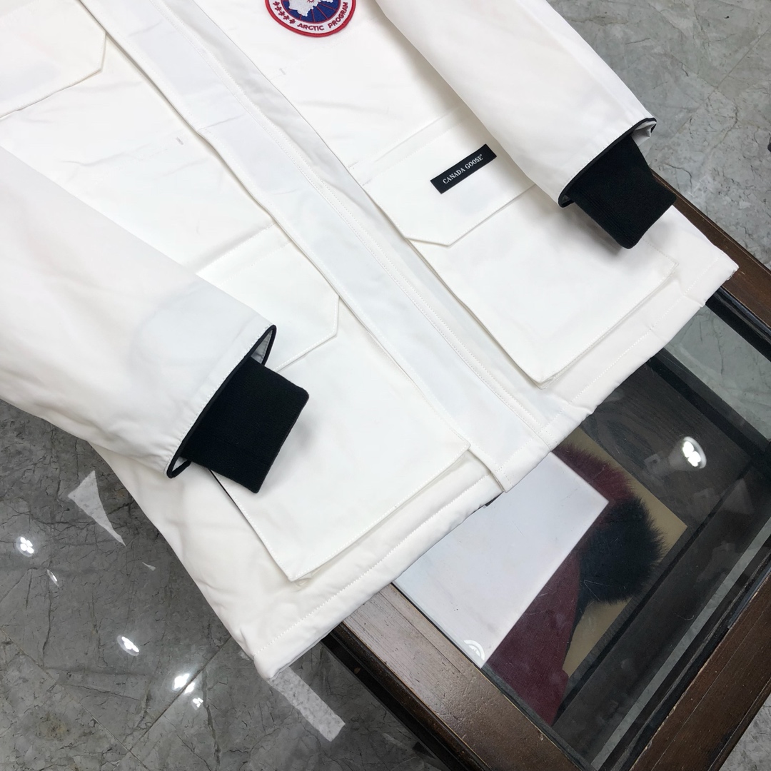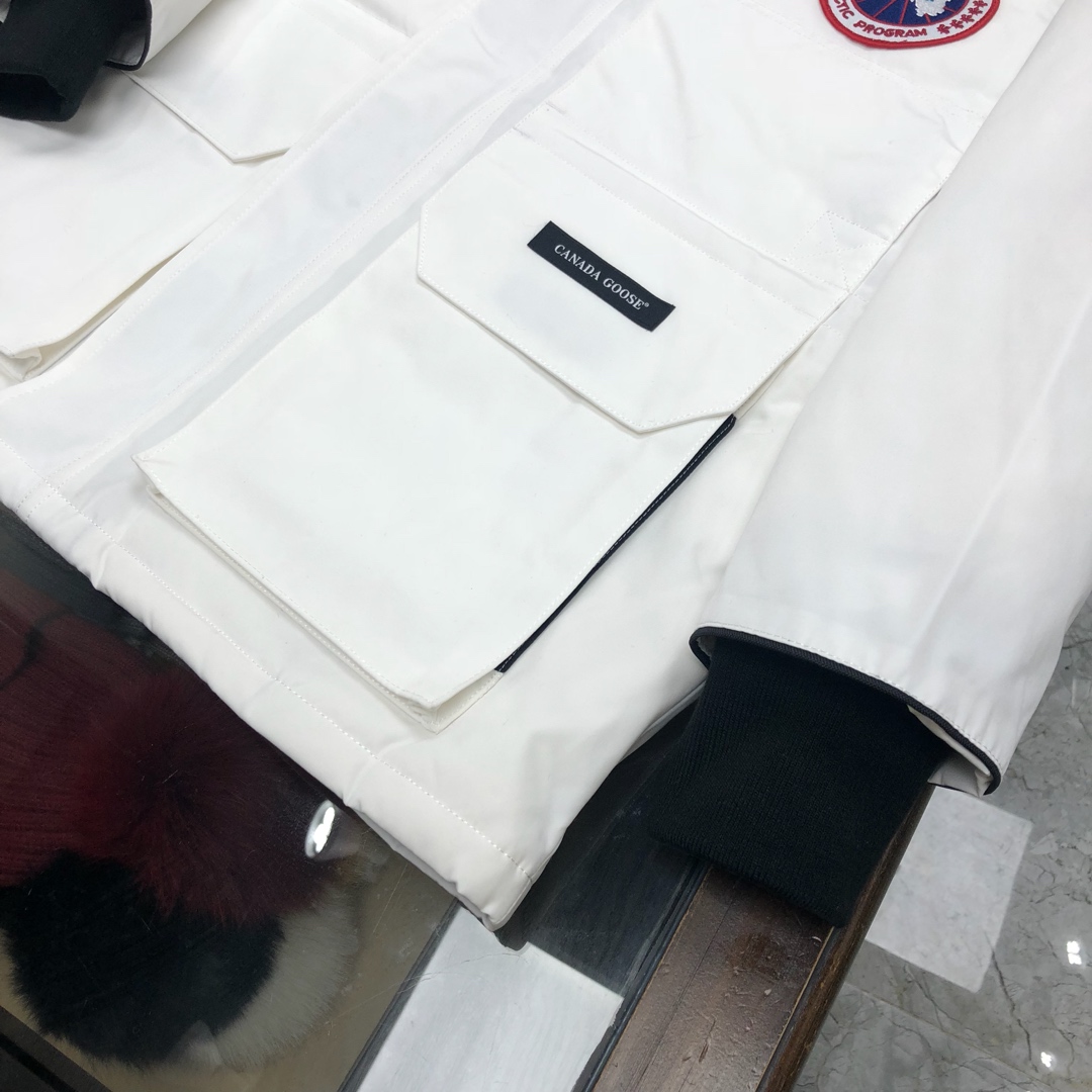 The fabric is made of high-density nano-grade waterproof material, making it windproof and wear-resistant with a certain thickness! The zipper is the YKK brand, used exclusively by Canada Goose, with a smooth double-sided design.