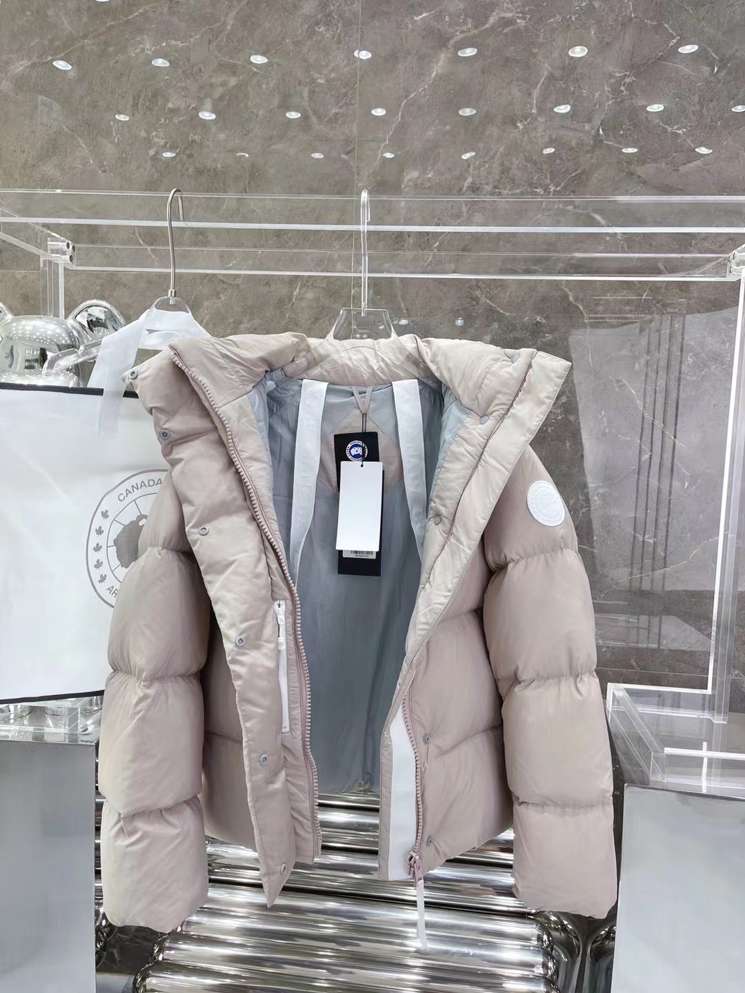 Canada Goose Puffer Jacket with Hood, Short Down Jacket Beige