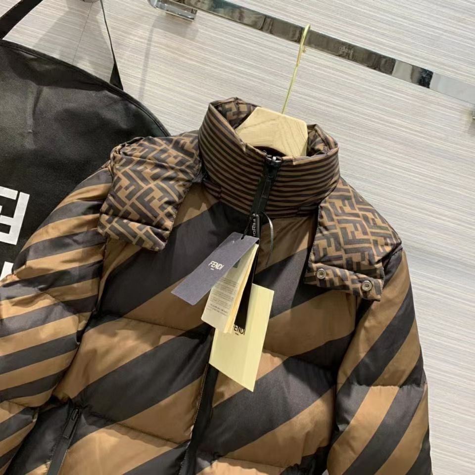 Fendi Down Jacket Launch 🥳 Original quality Fend* Autumn/Winter new collection. Reversible! Unisex short bread-style down jacket with 5 different printed fabric patchwork designs for a unique and stylish look! Features a removable windproof hood design, and a loose “silkworm” silhouette for a youthful and cool appearance! Filled with national standard 90% white duck down! Made of lightweight and comfortable imported nylon fabric. Comes with original hardware accessories and complete original labels! Available sizes: 42, 44, 46, 48, 50. Ready to grab now!