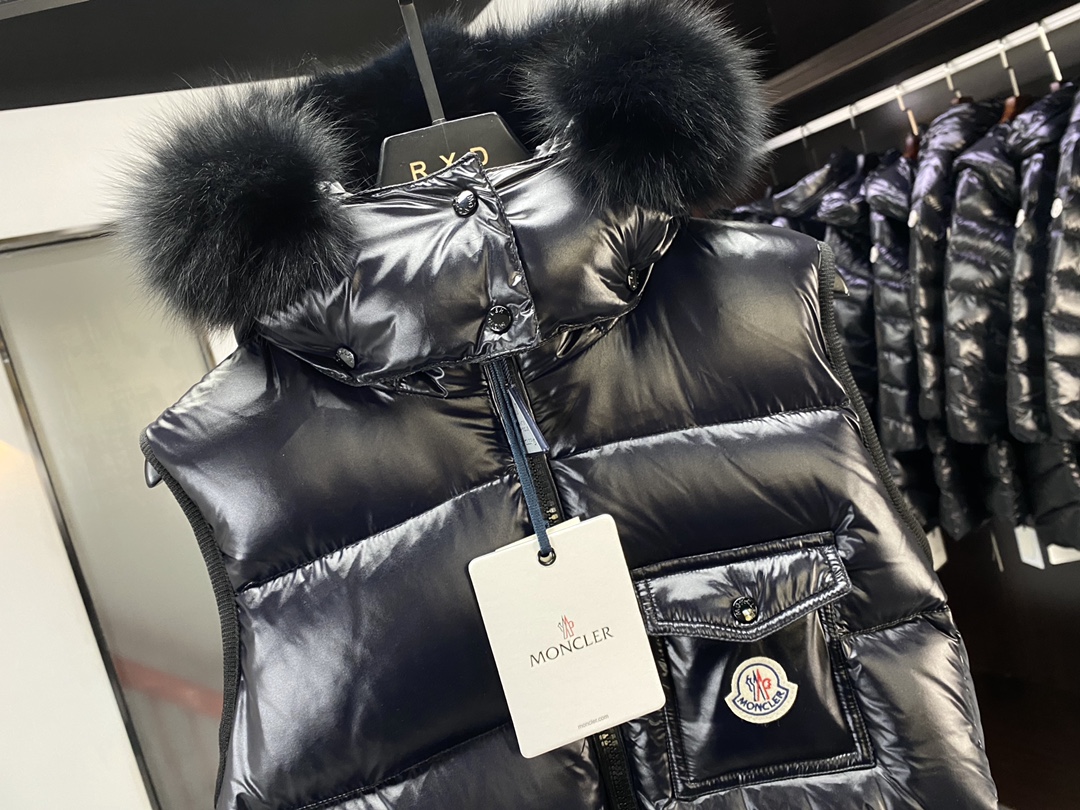 Moncler Balabio Women’s Fur Hood Down Vest Black