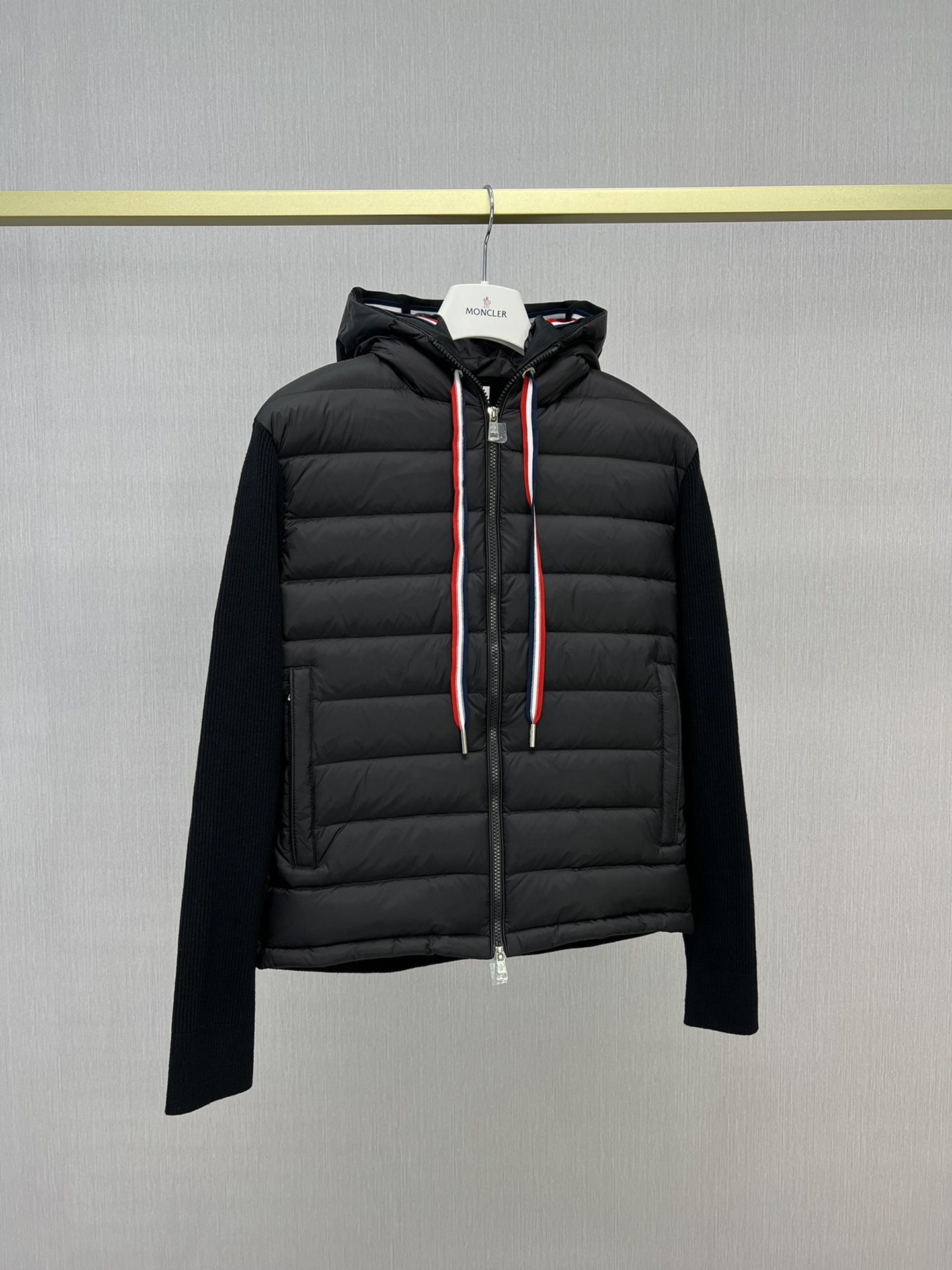Moncler Down Jacket 🔥🔥 Monc1er/Exclusive Black Wool-Sleeve Hooded Knit Down Jacket for Men