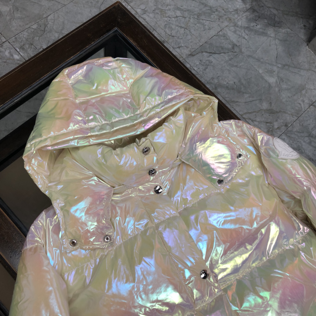 This new women’s Moncler down jacket is designed to bring bold sophistication to the season, combining innovative materials and sleek details for a high-end look. Crafted with care and attention, the jacket features a trend-forward iridescent fabric that exudes luxury with its natural luster. Its short, cool silhouette is perfect for an effortlessly chic look.