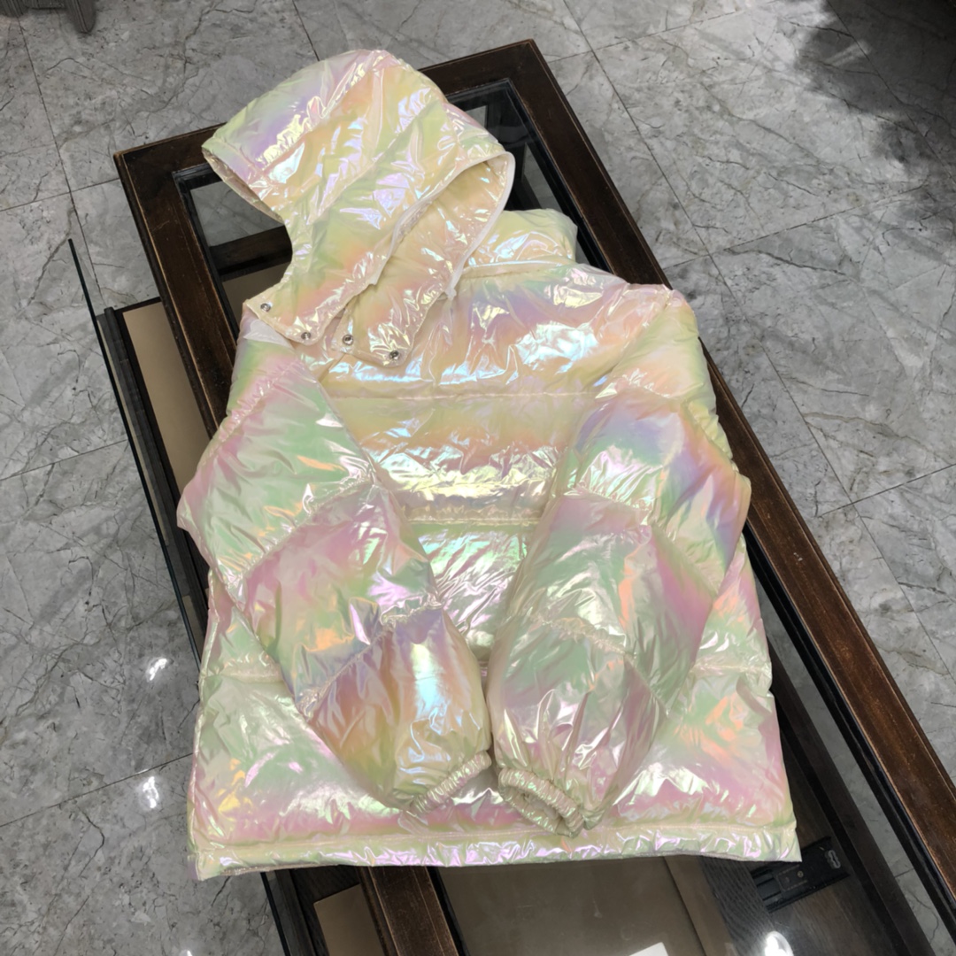 This new women’s Moncler down jacket is designed to bring bold sophistication to the season, combining innovative materials and sleek details for a high-end look. Crafted with care and attention, the jacket features a trend-forward iridescent fabric that exudes luxury with its natural luster. Its short, cool silhouette is perfect for an effortlessly chic look.
