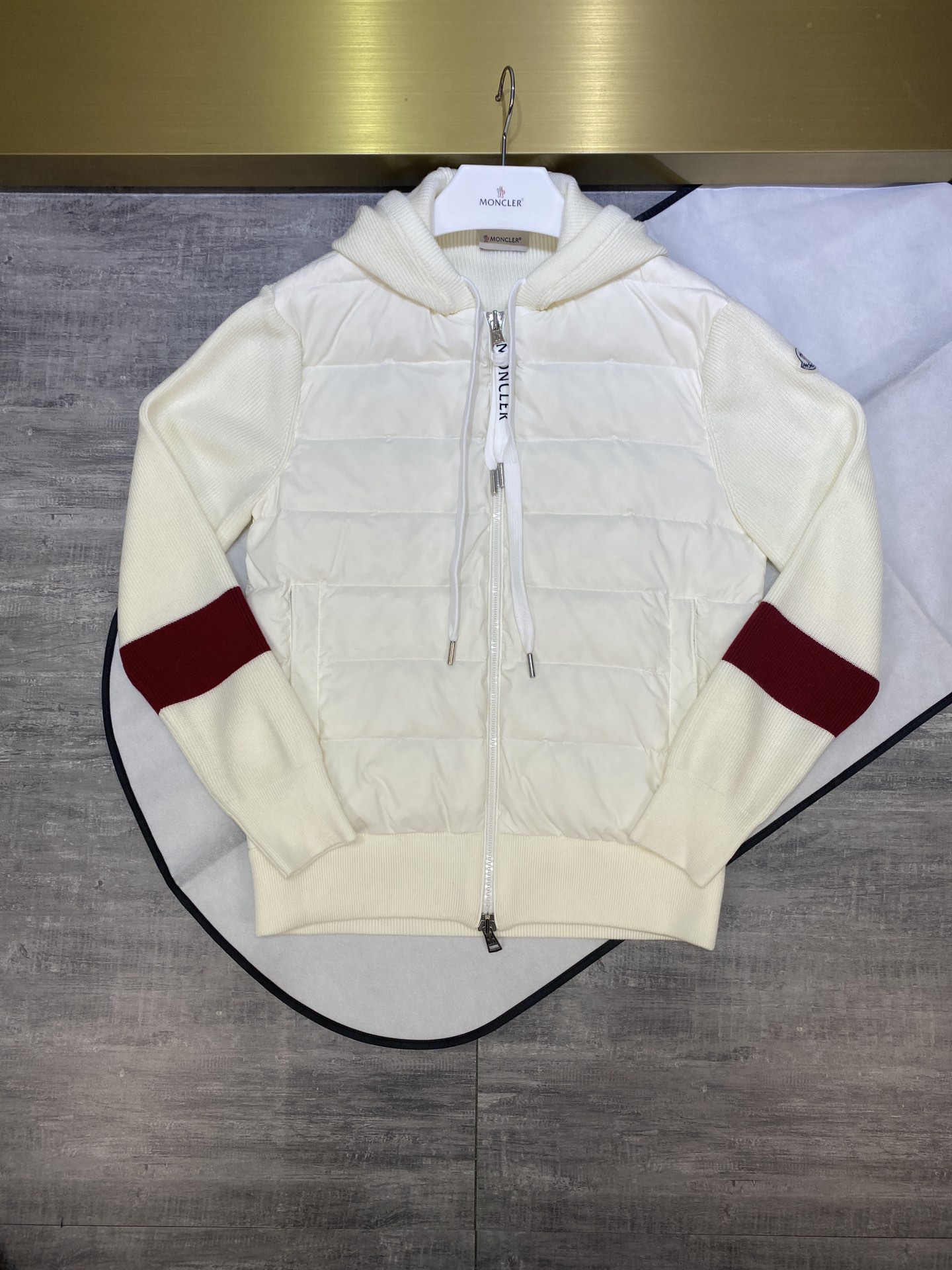 Moncler Down Jacket White, Slim fit Knit Short down jackets