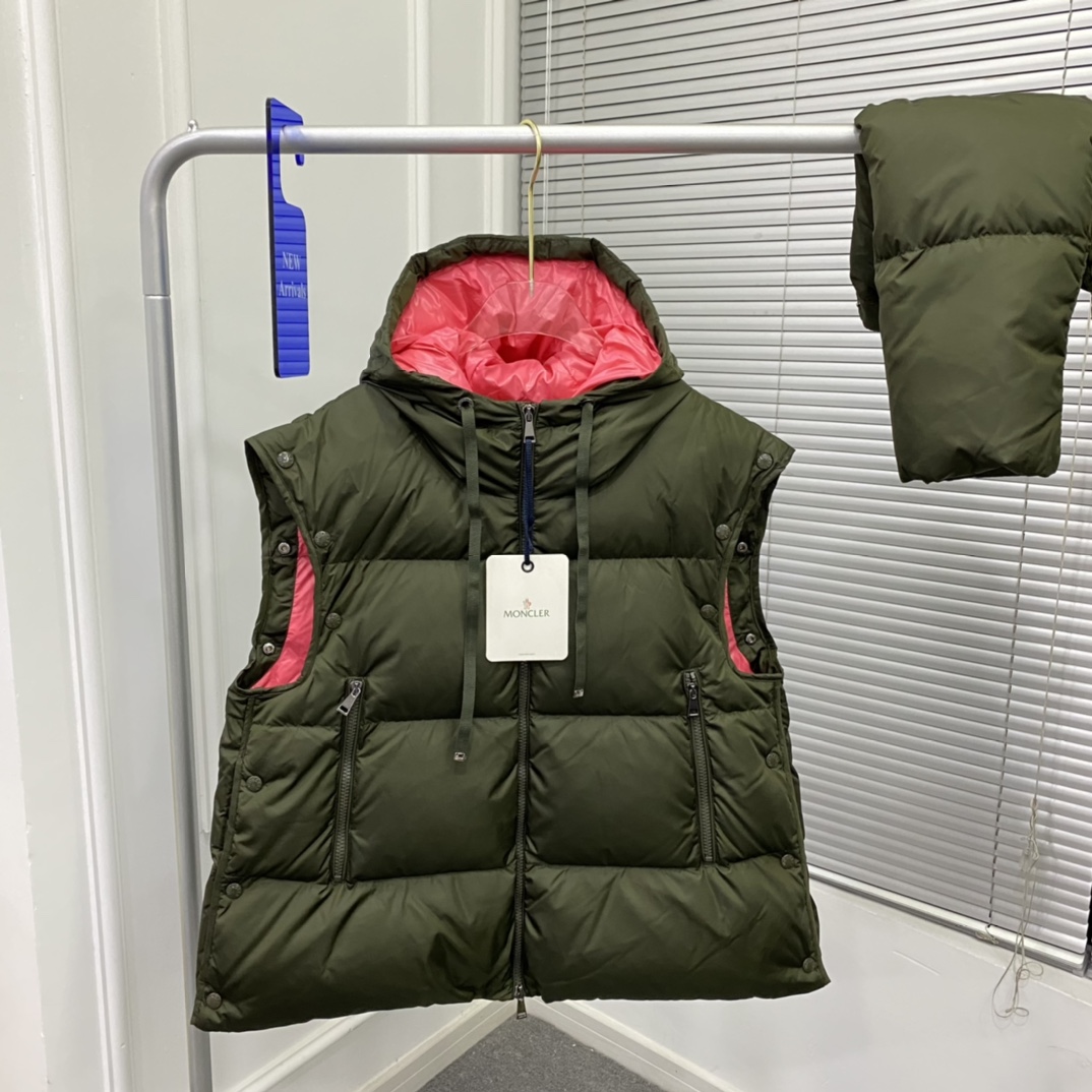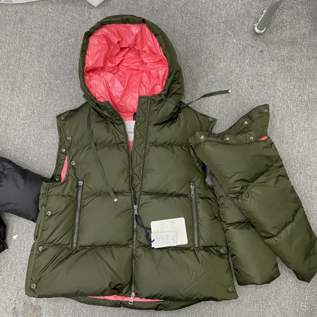 Moncler Hooded Down Jacket Army green detachable sleeves
