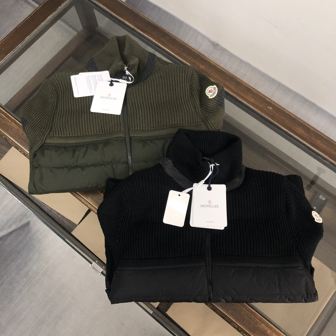 The jacket features a large-toothed zipper for closure, blending fashion with functionality, while the knit interior ensures added warmth. The iconic logo on the sleeves enhances its luxurious appeal.