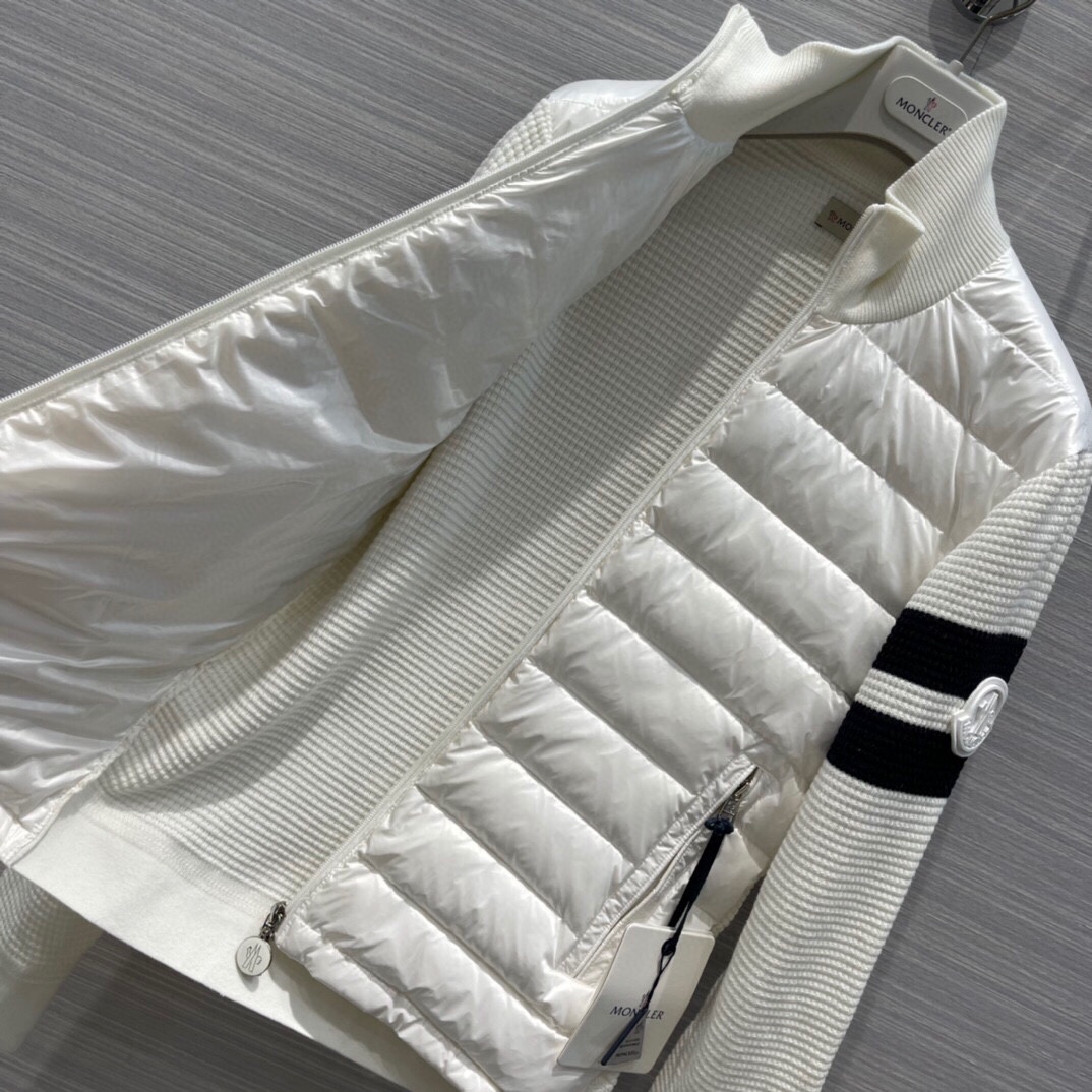 Moncler Knit Padded Slim fit Down Jacket White