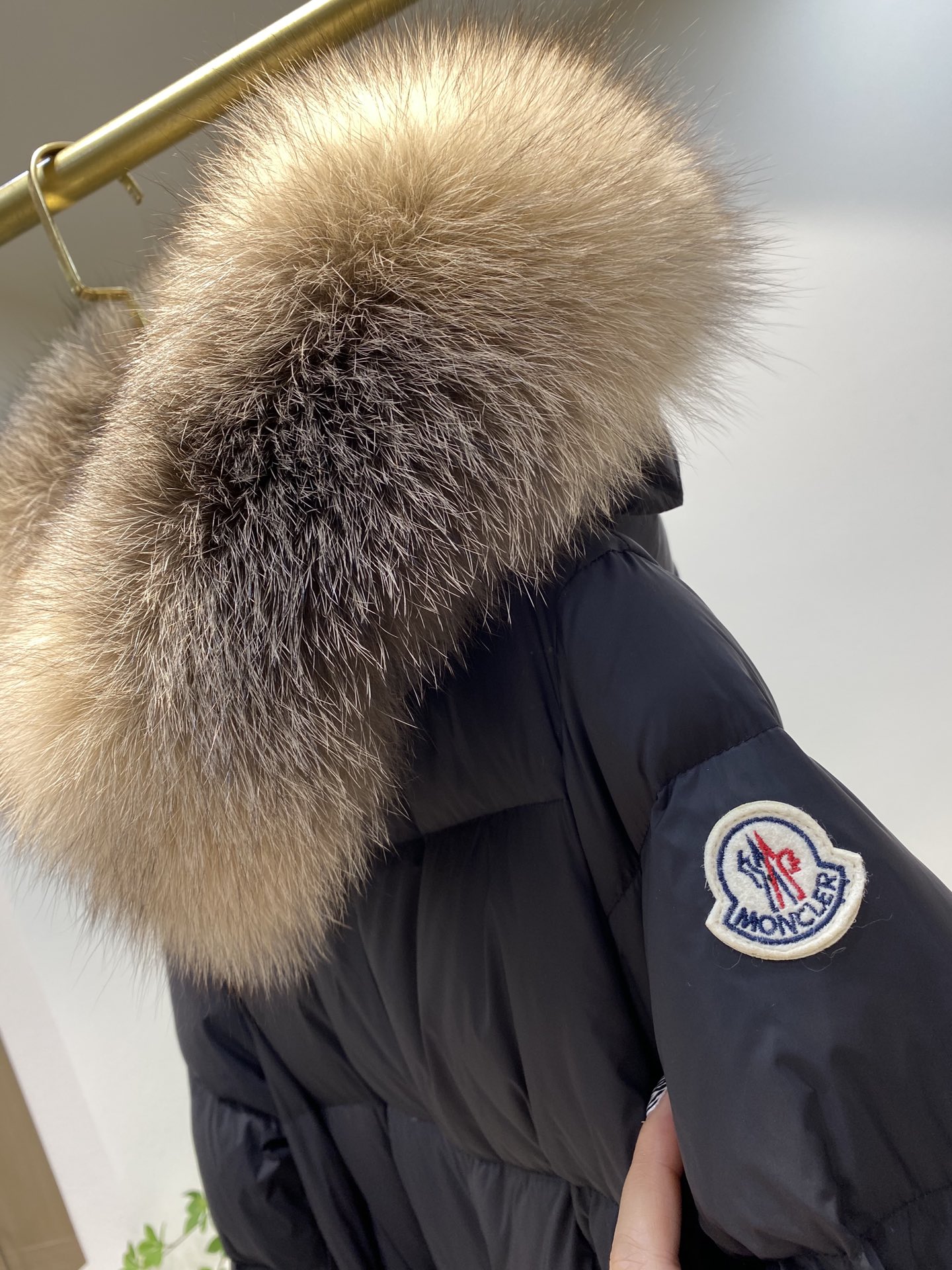 This new autumn/winter style features a hood, a belt, and a fur collar. Available in green, black, and white, this jacket is a top-selling item that often sells out in stores. Its tailored design highlights the jacket’s elegant silhouette, avoiding any puffy or bulky appearance while providing a lightweight and sleek look.