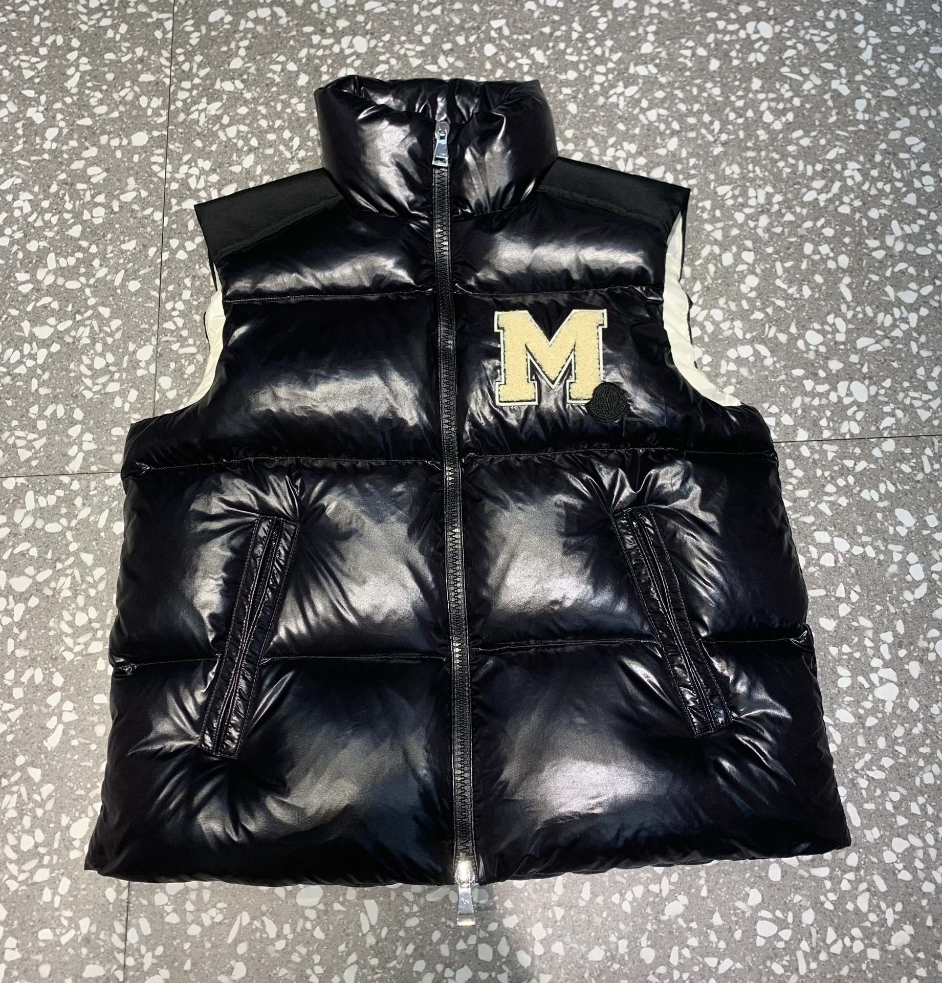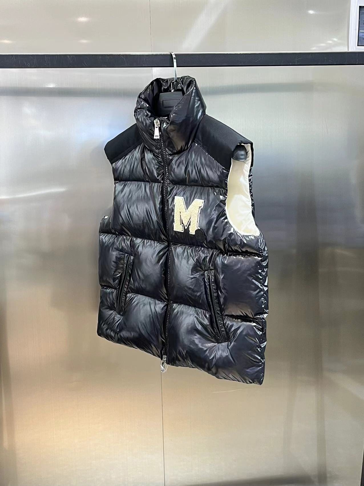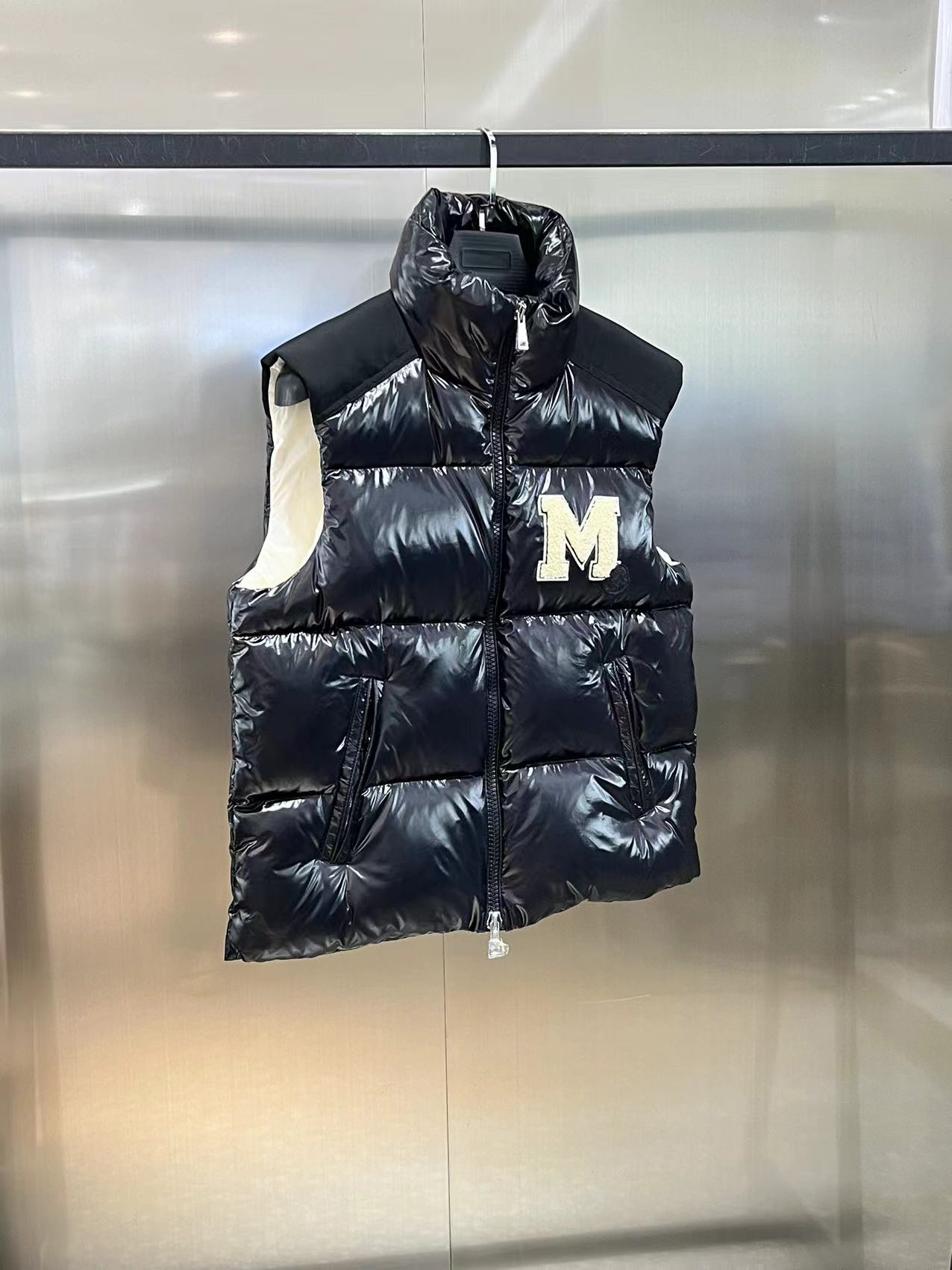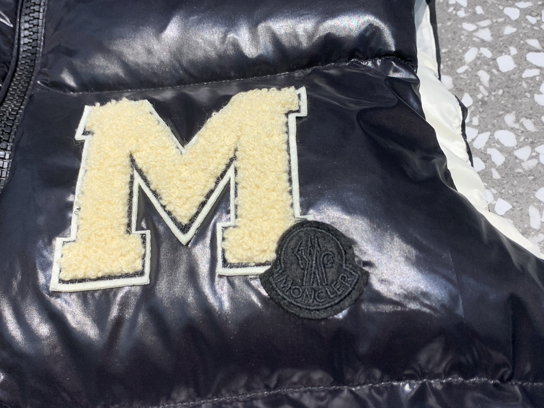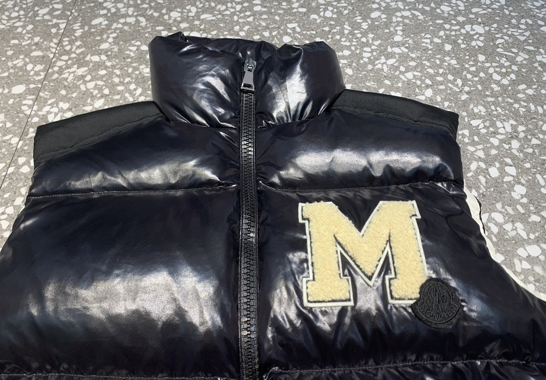 Moncler M logo Stand Collar Down Vest Black