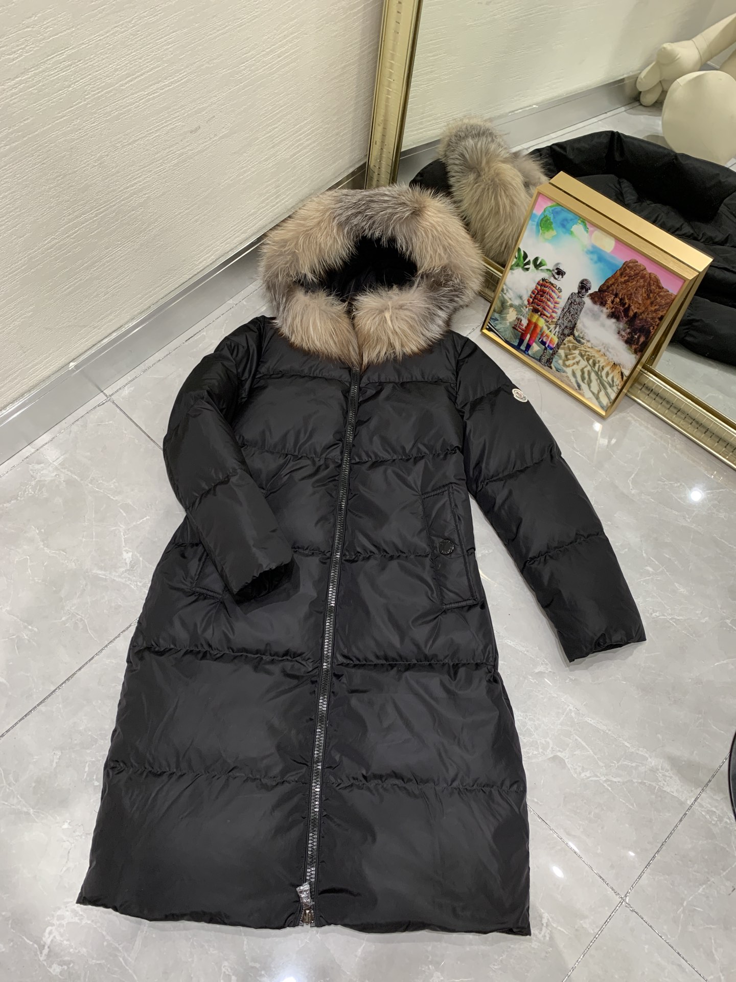 Moncler Marrionnier Women’s Long Down Jacket Fox Fur boed Black