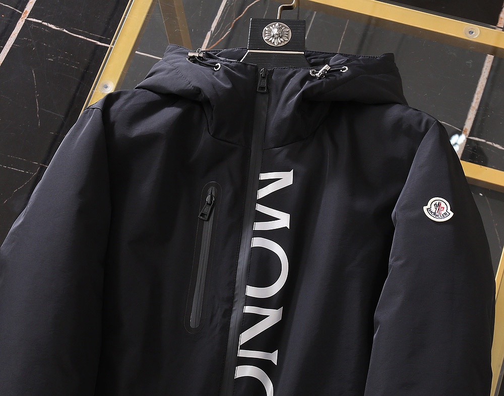 Moncler Men’s Hooded Down Jacket Black Big Logo Design