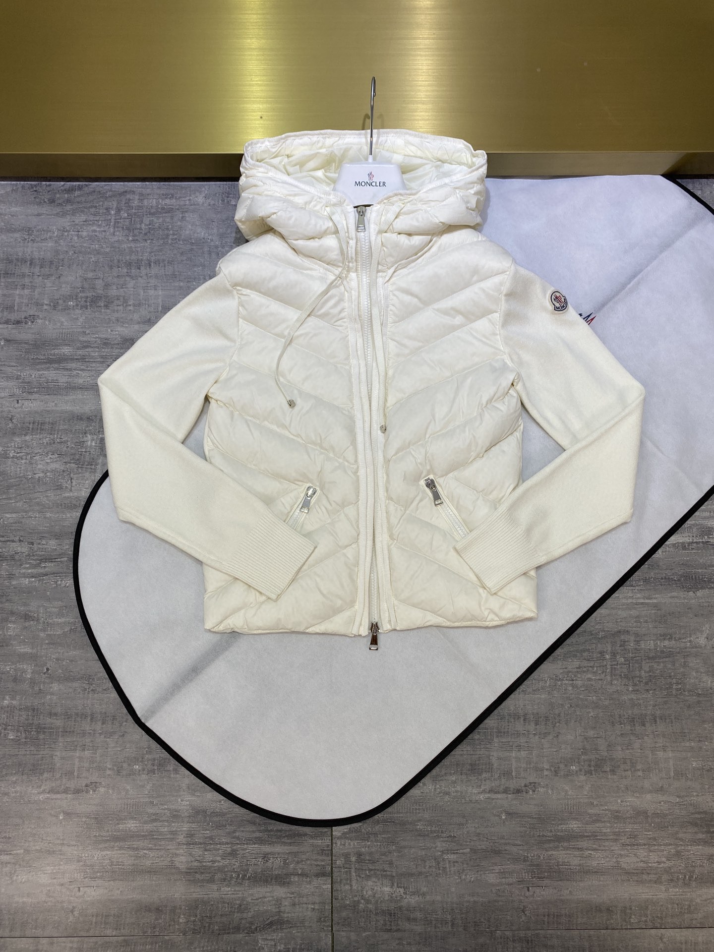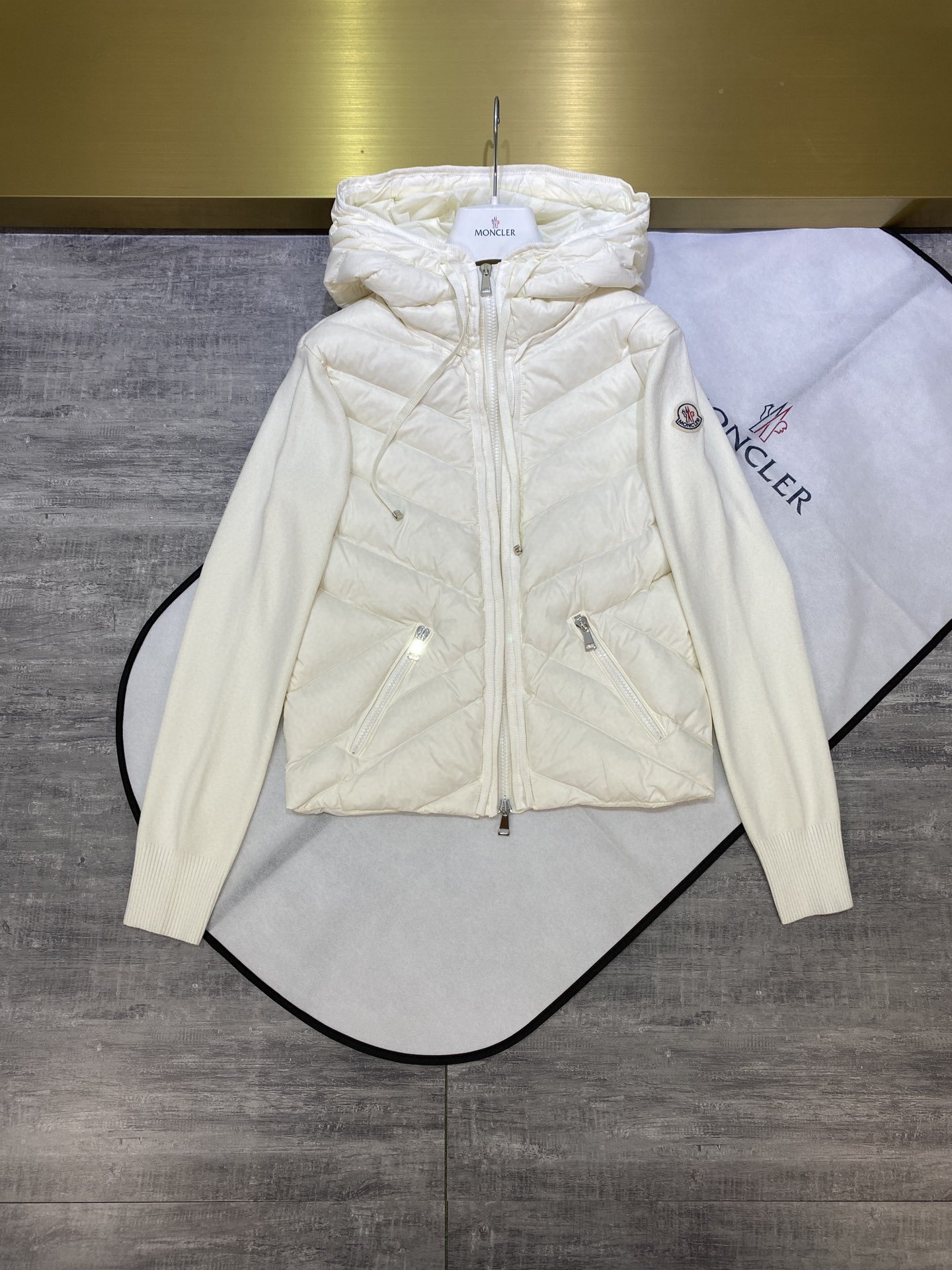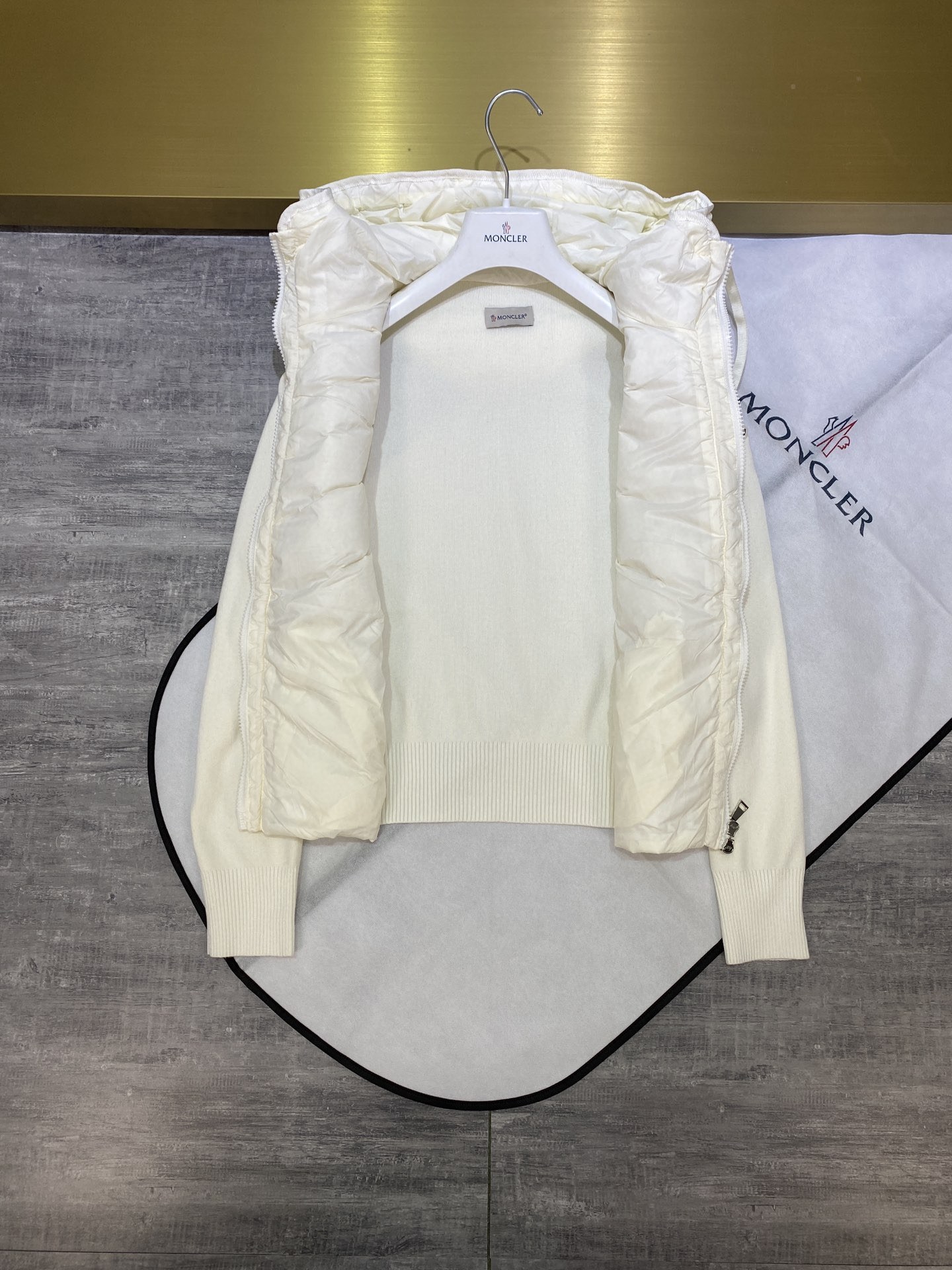 Moncler Men’s Knit Sleeve Hooded Short Down Jacket White-2