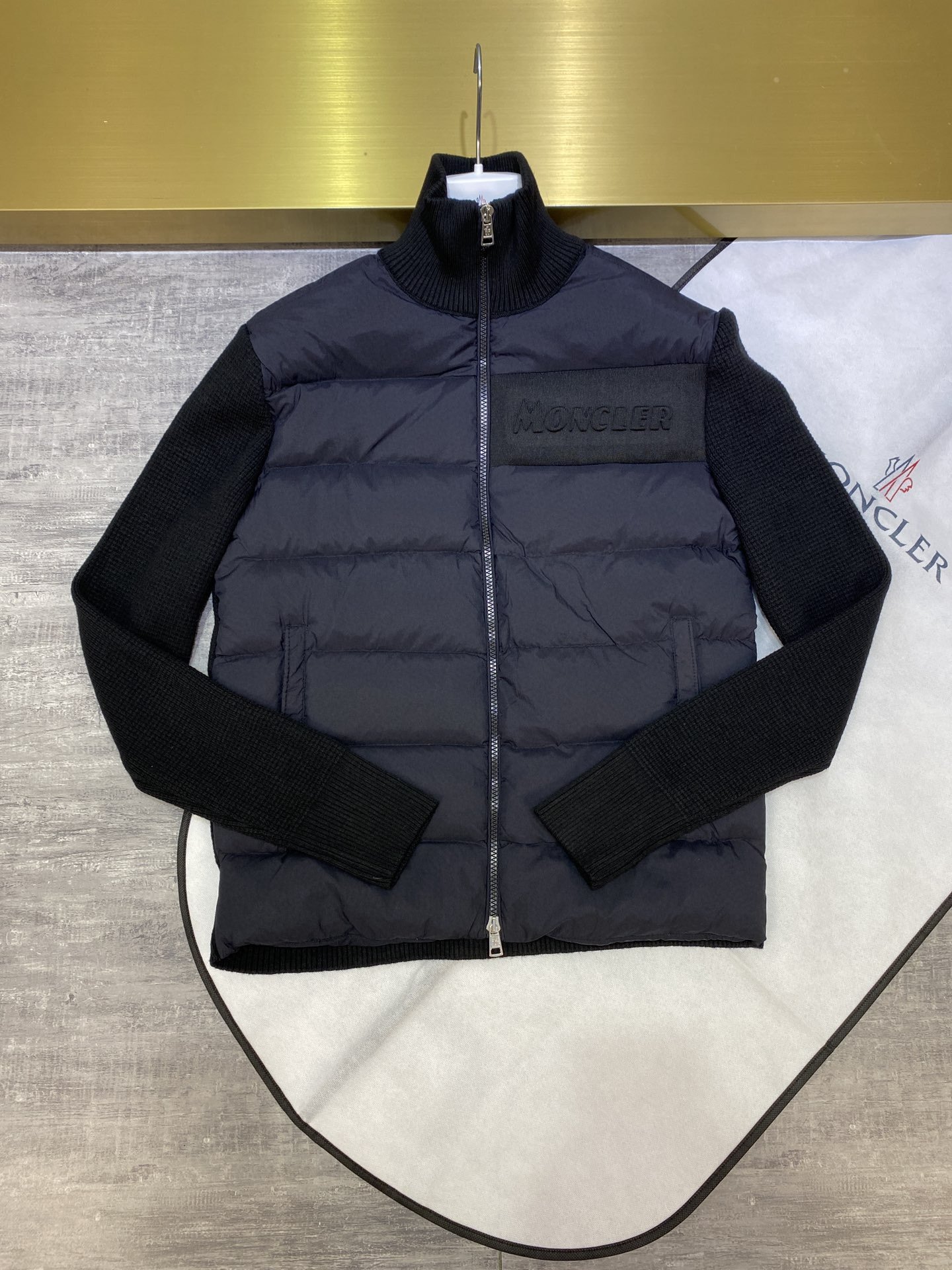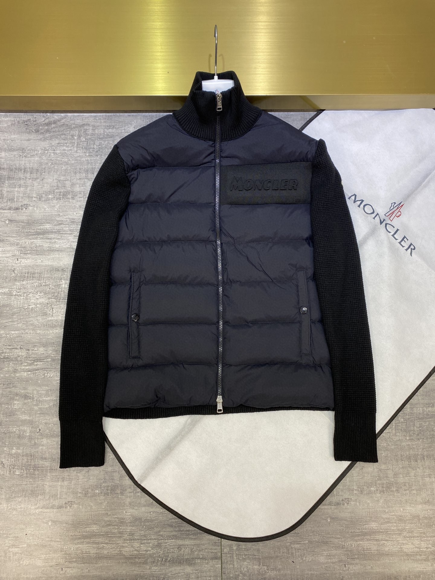 Be the first to review “Moncler Men’s Knit Sleeve Short Down Jacket Black”