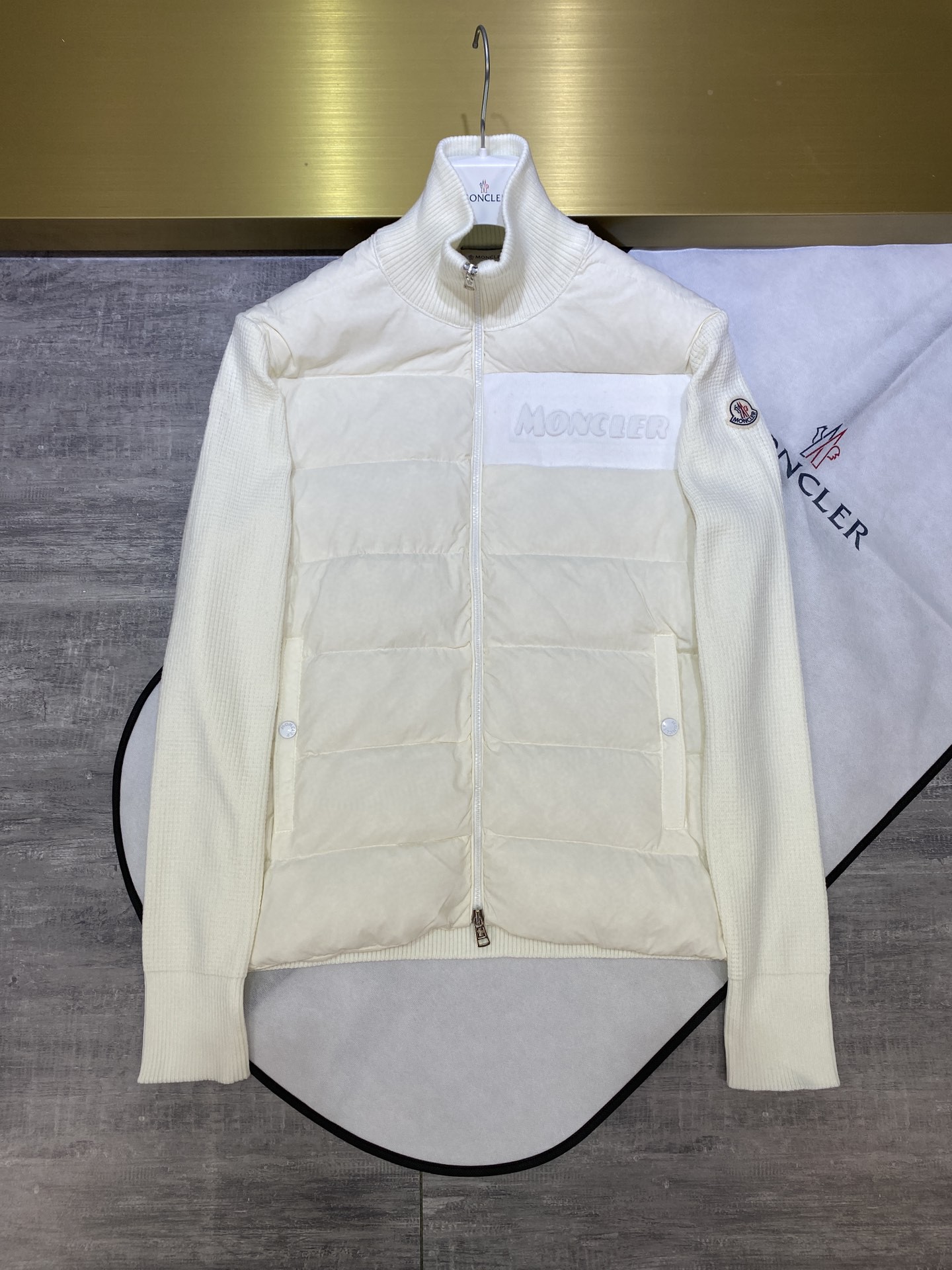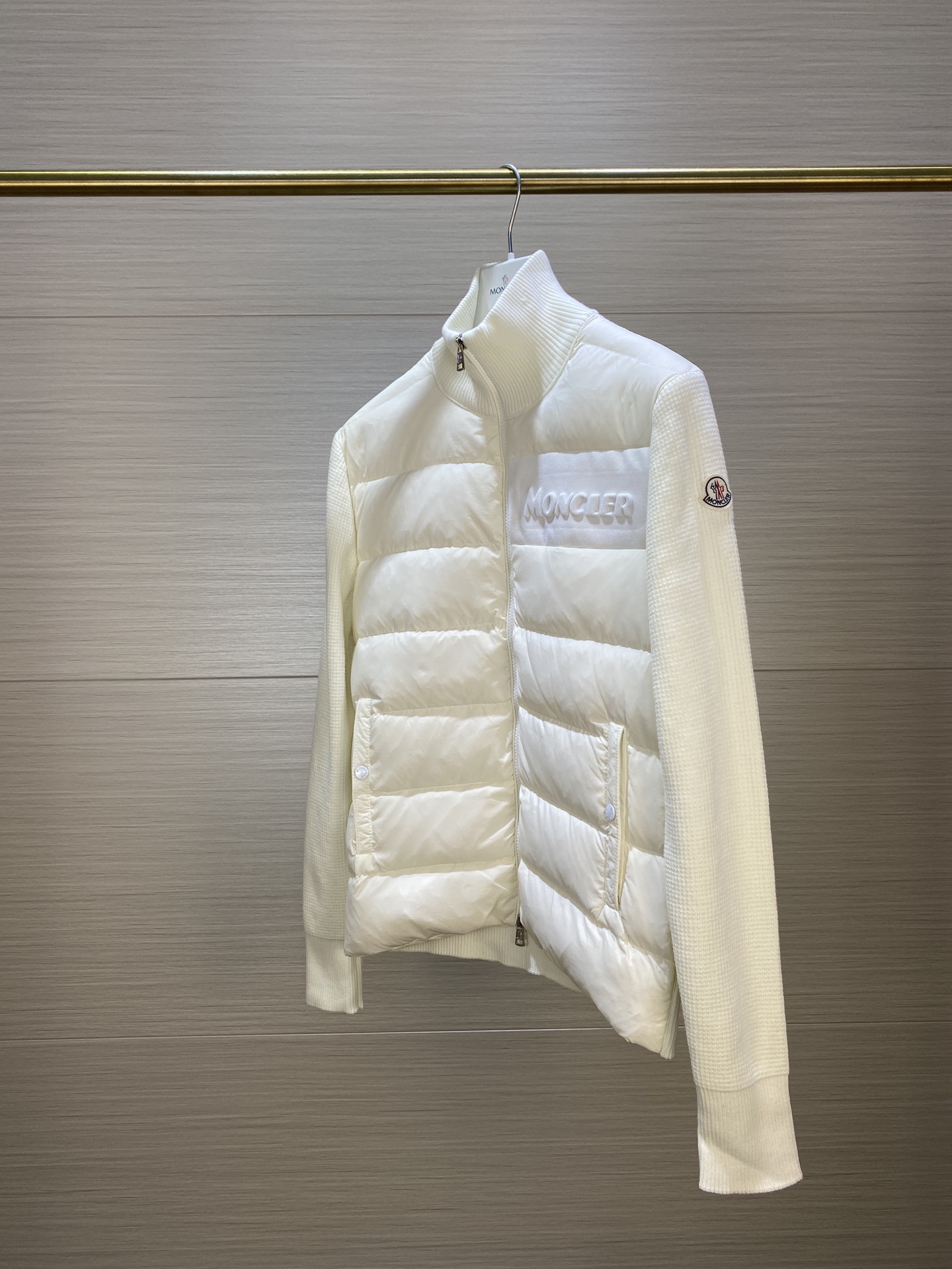 Moncler Men’s Knit Sleeve Short Down Jacket White