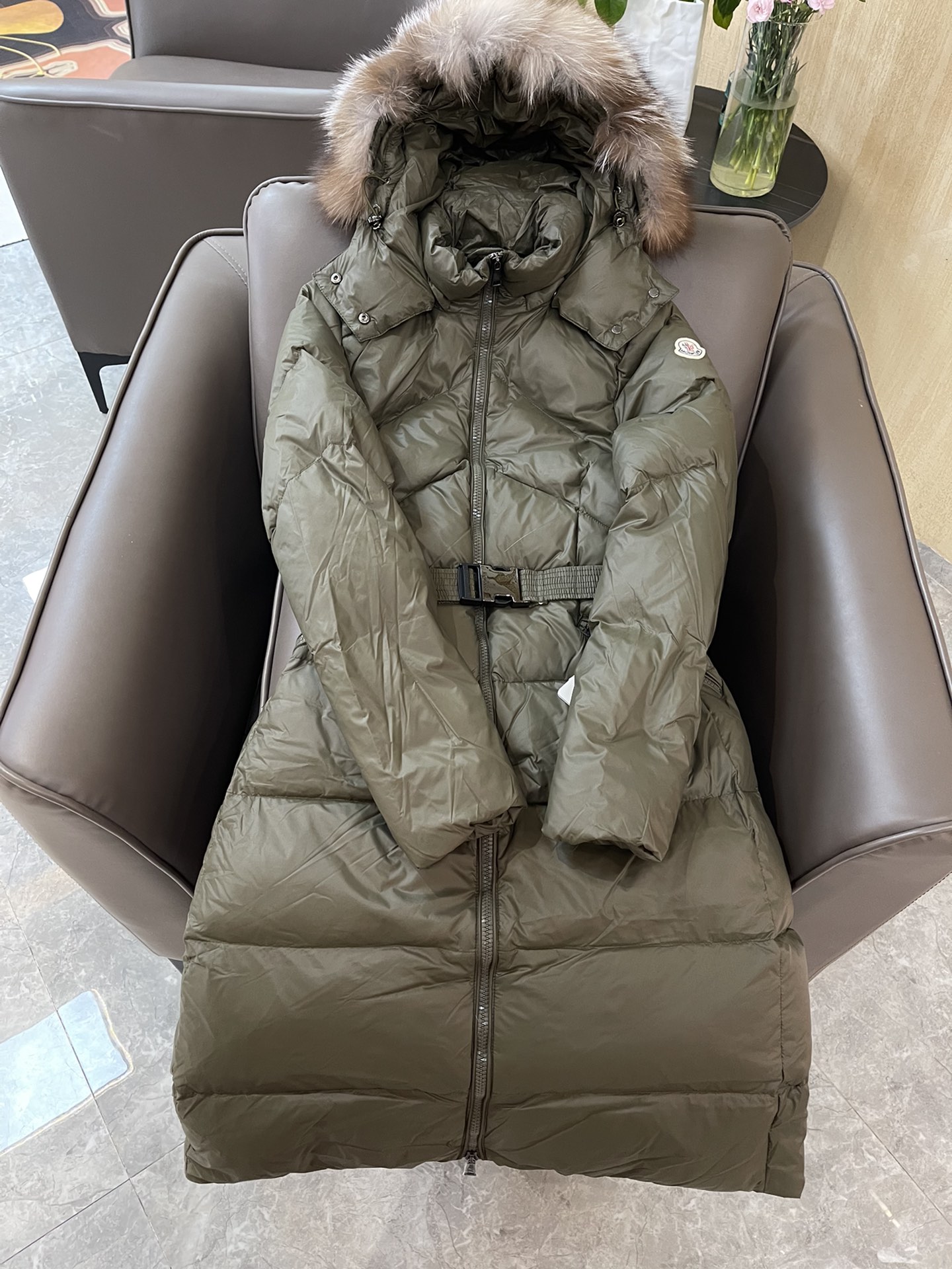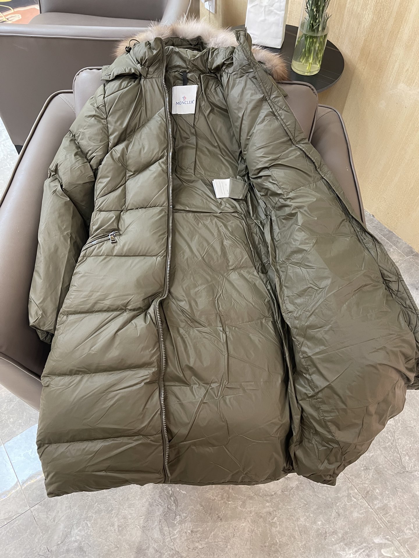 Moncler Moc Fox Fur Hooded Long Down Jacket for Women Green