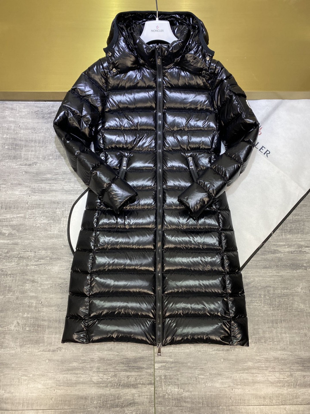 Moncler moka Long Down Jacket, Glossy Black Long Down Coat