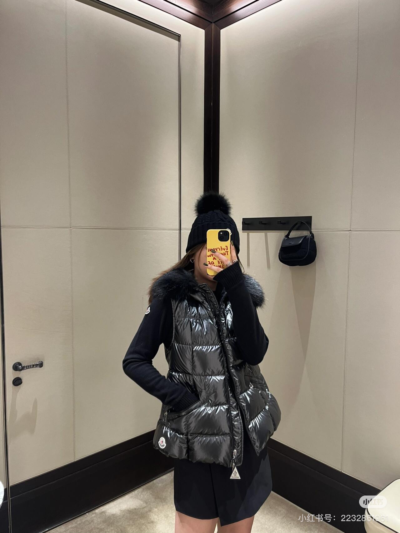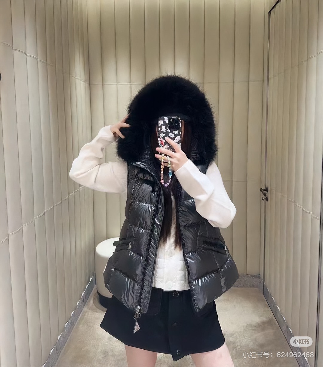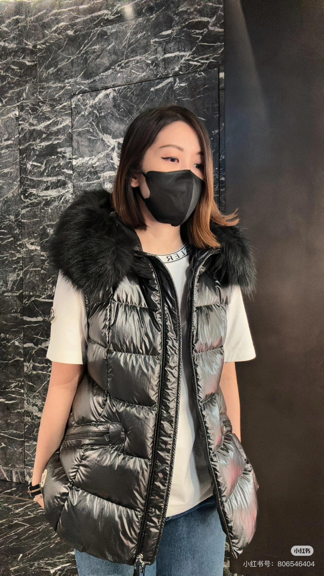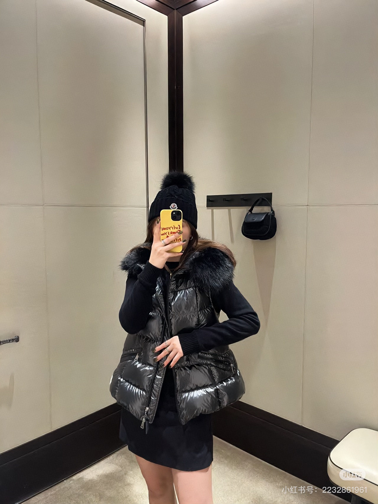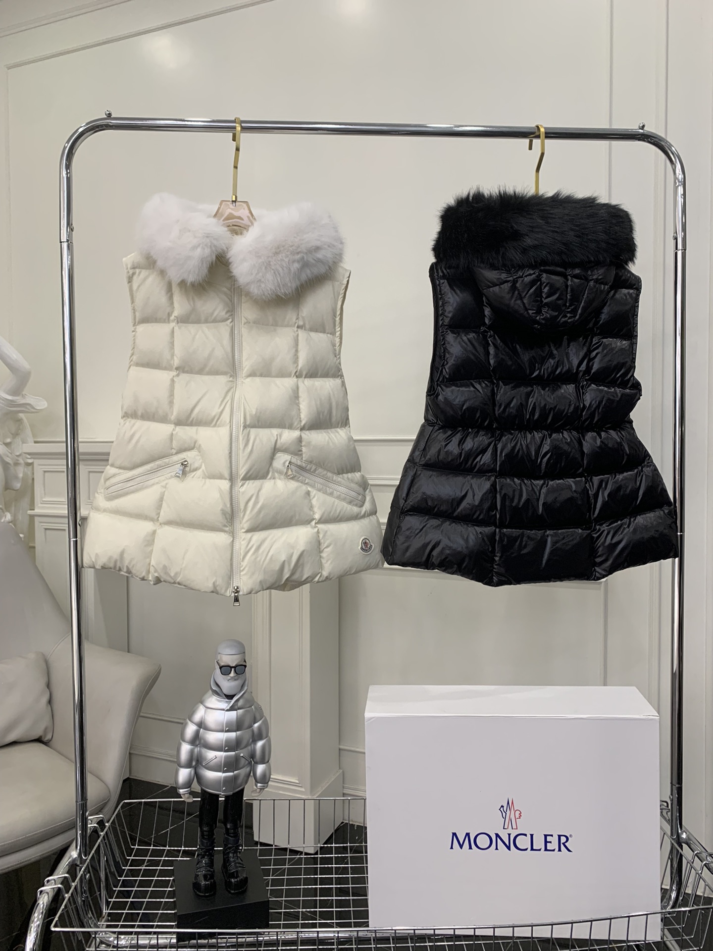 Hot order recommendation❤️Original quality Moncler down vest Moncler down vest autumn and winter new product large fur collar pearlescent down vest! Original customized special pearlescent coating fabric with great texture! Removable fox fur collar! Milky and youthful girlish style Waist-hugging A-line version is casual and fashionable! Lightweight, warm and comfortable! Original hardware accessories are in stock! Order now! Color: black, white Size: 1234
