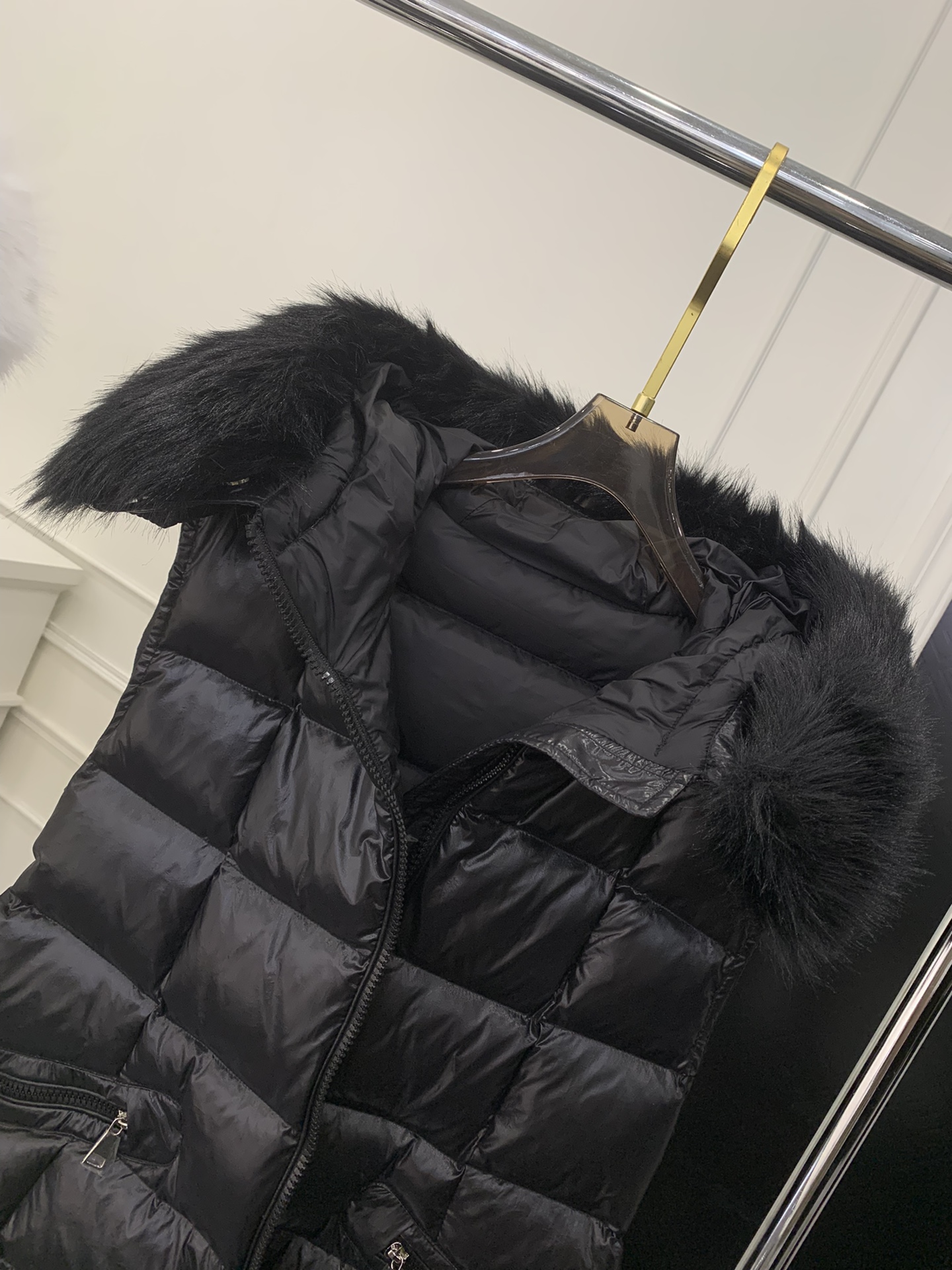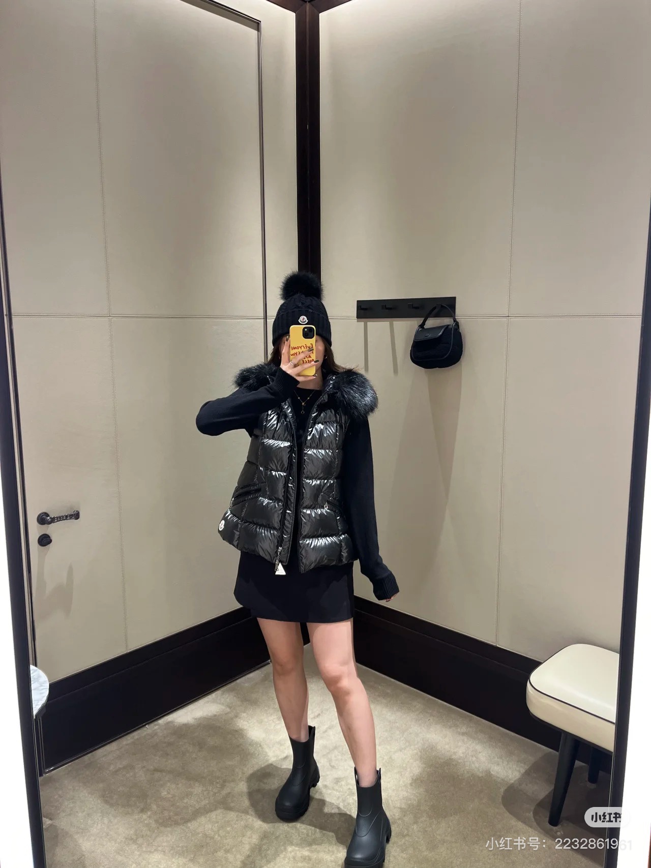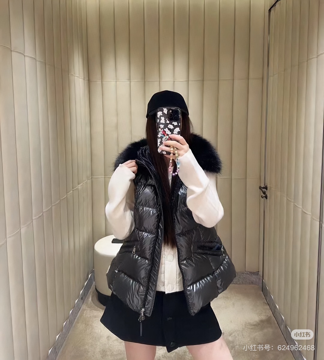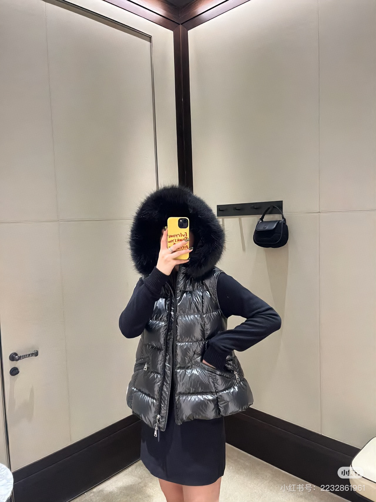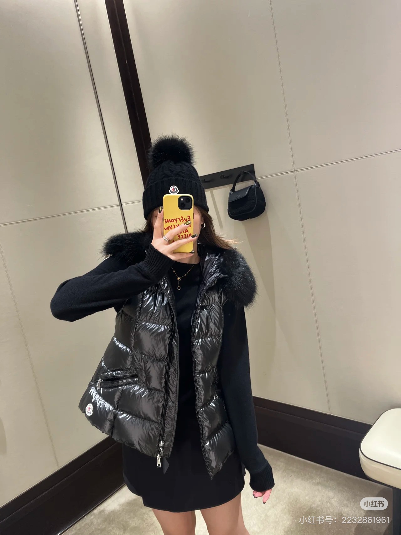 Hot order recommendation❤️Original quality Moncler down vest Moncler down vest autumn and winter new product large fur collar pearlescent down vest! Original customized special pearlescent coating fabric with great texture! Removable fox fur collar! Milky and youthful girlish style Waist-hugging A-line version is casual and fashionable! Lightweight, warm and comfortable! Original hardware accessories are in stock! Order now! Color: black, white Size: 1234