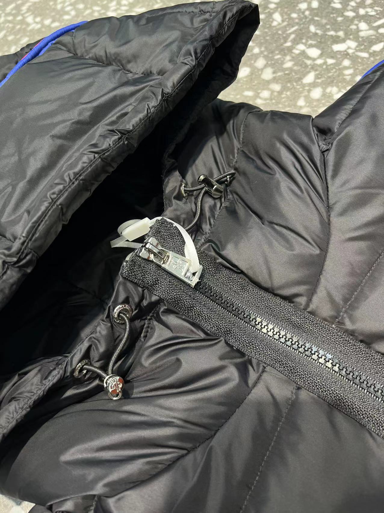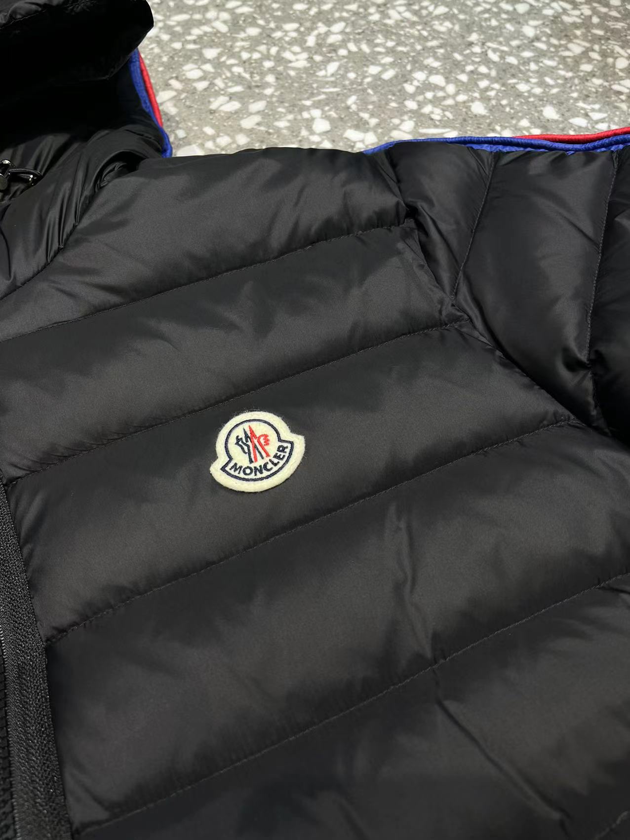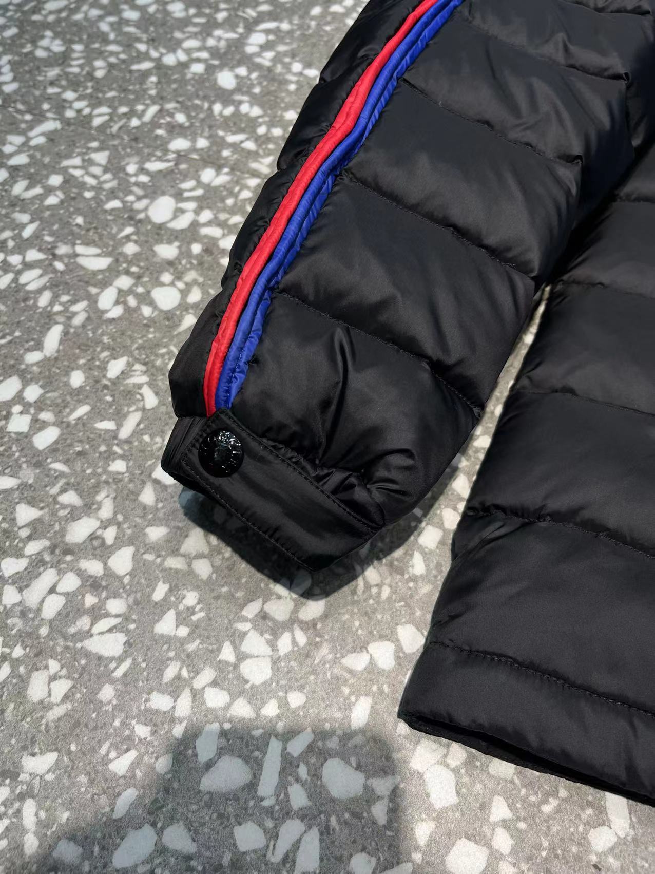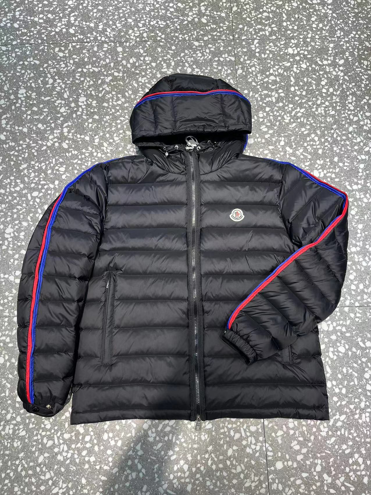 Be the first to review “Moncler Red/Blue Stripe Short Puffer Jacket Black”