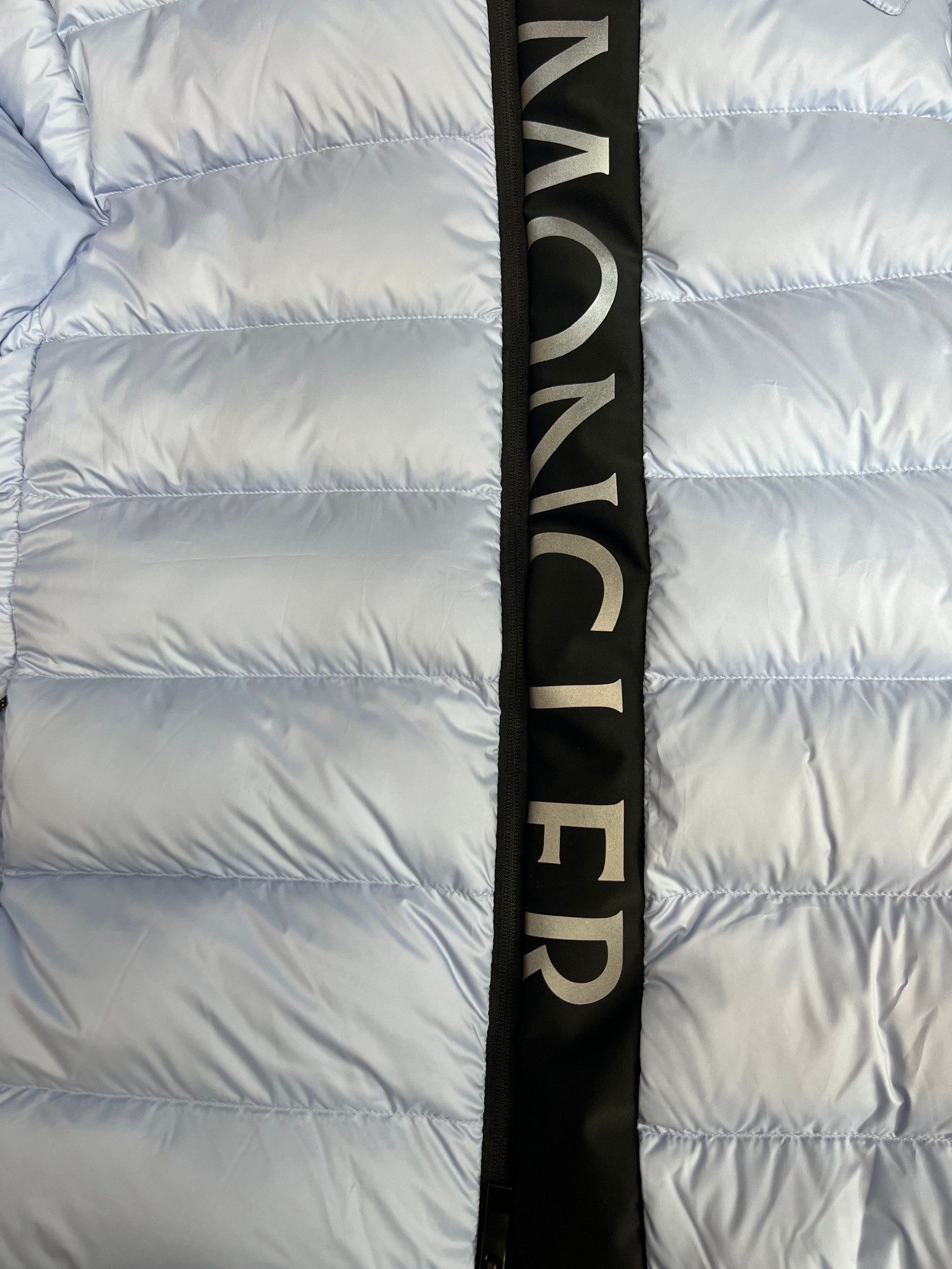 Moncler Reflective logo Hooded Puffer Down Jacket Blue