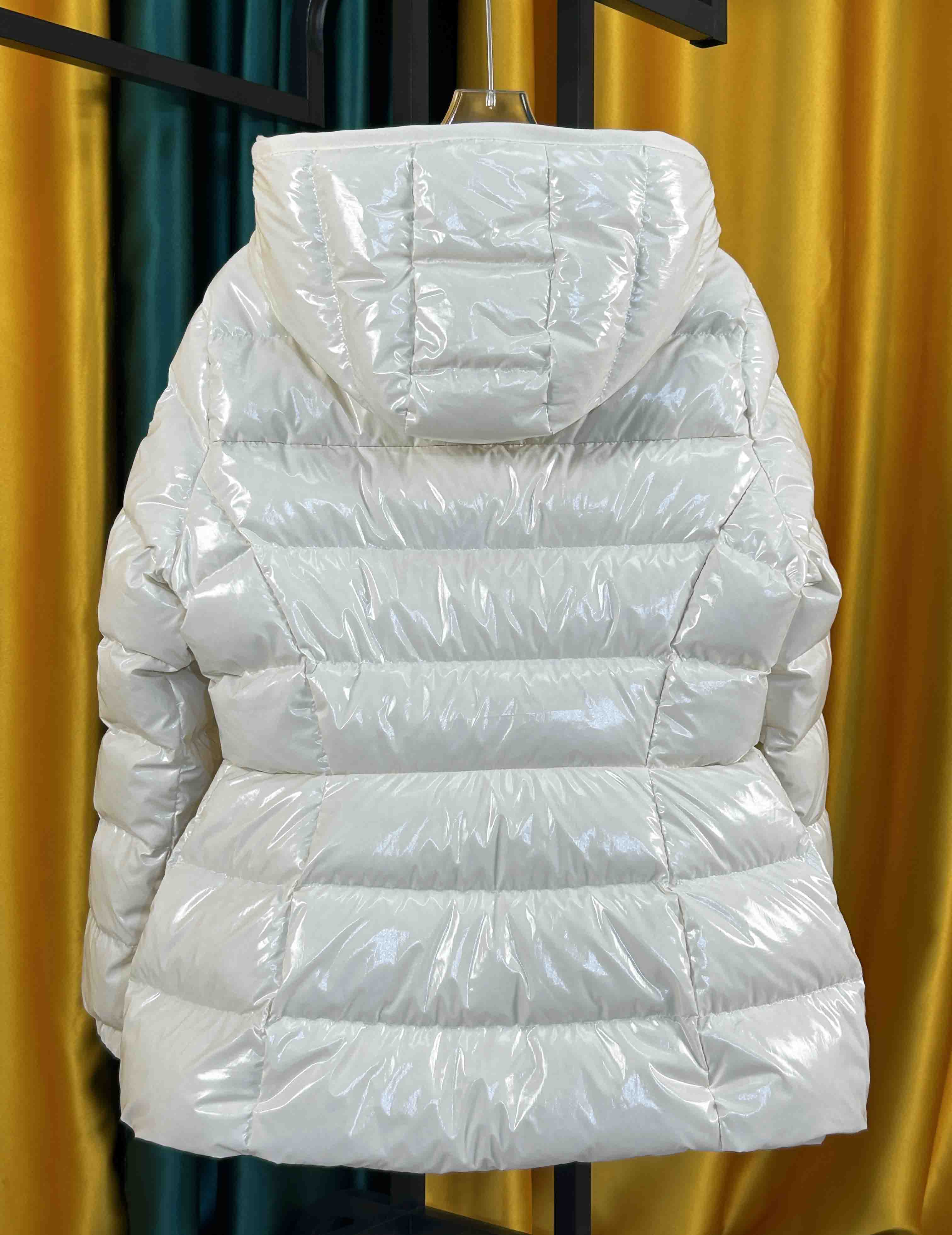 Moncler Short Down Jacket, Hooded Glossy Puffer Jacket for Women White