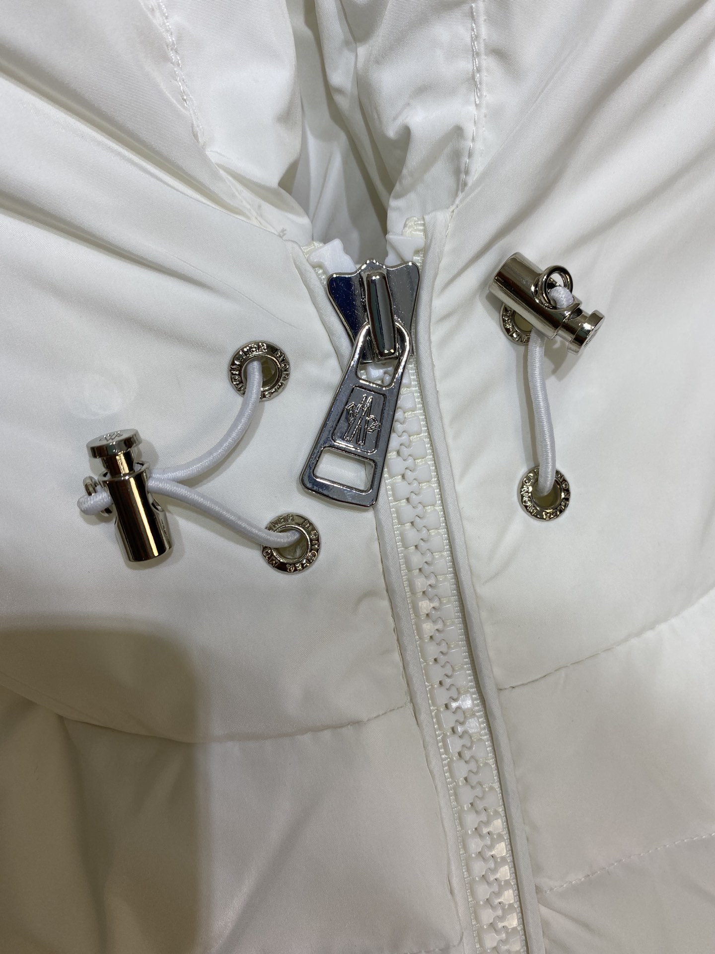 Moncler Short Down Jacket with Reflective Stripe Hood White