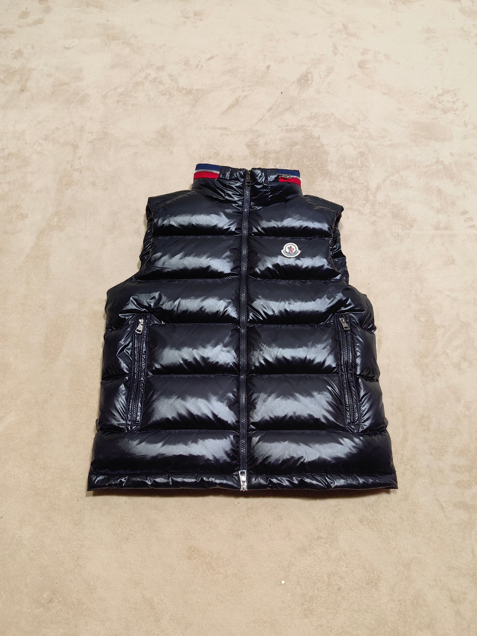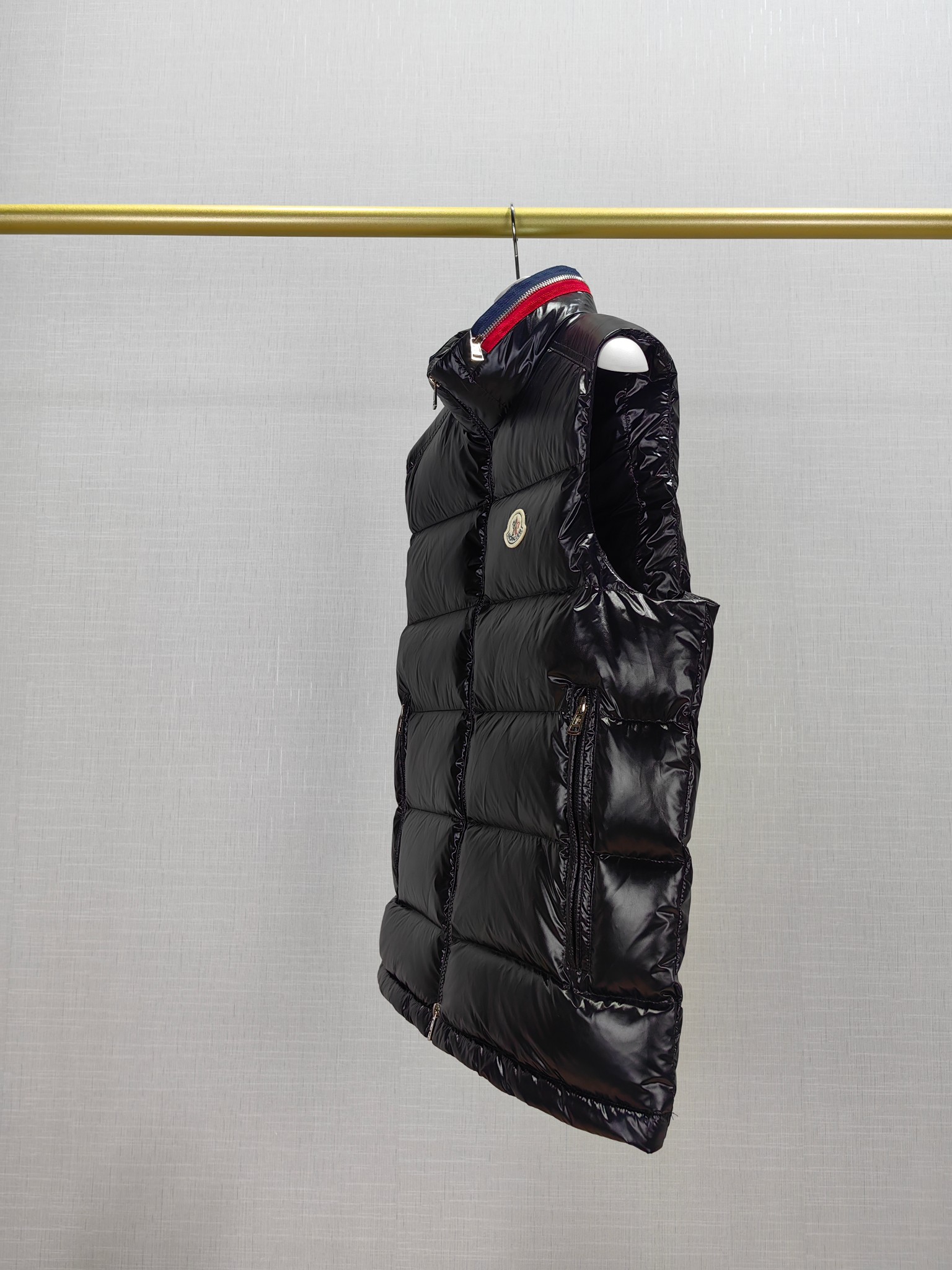 Moncler Slim Fit Down Vest with red blue stripe Black
