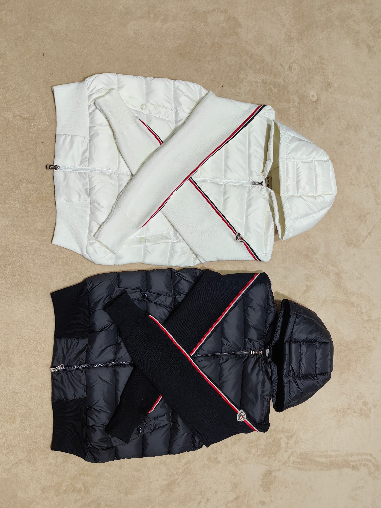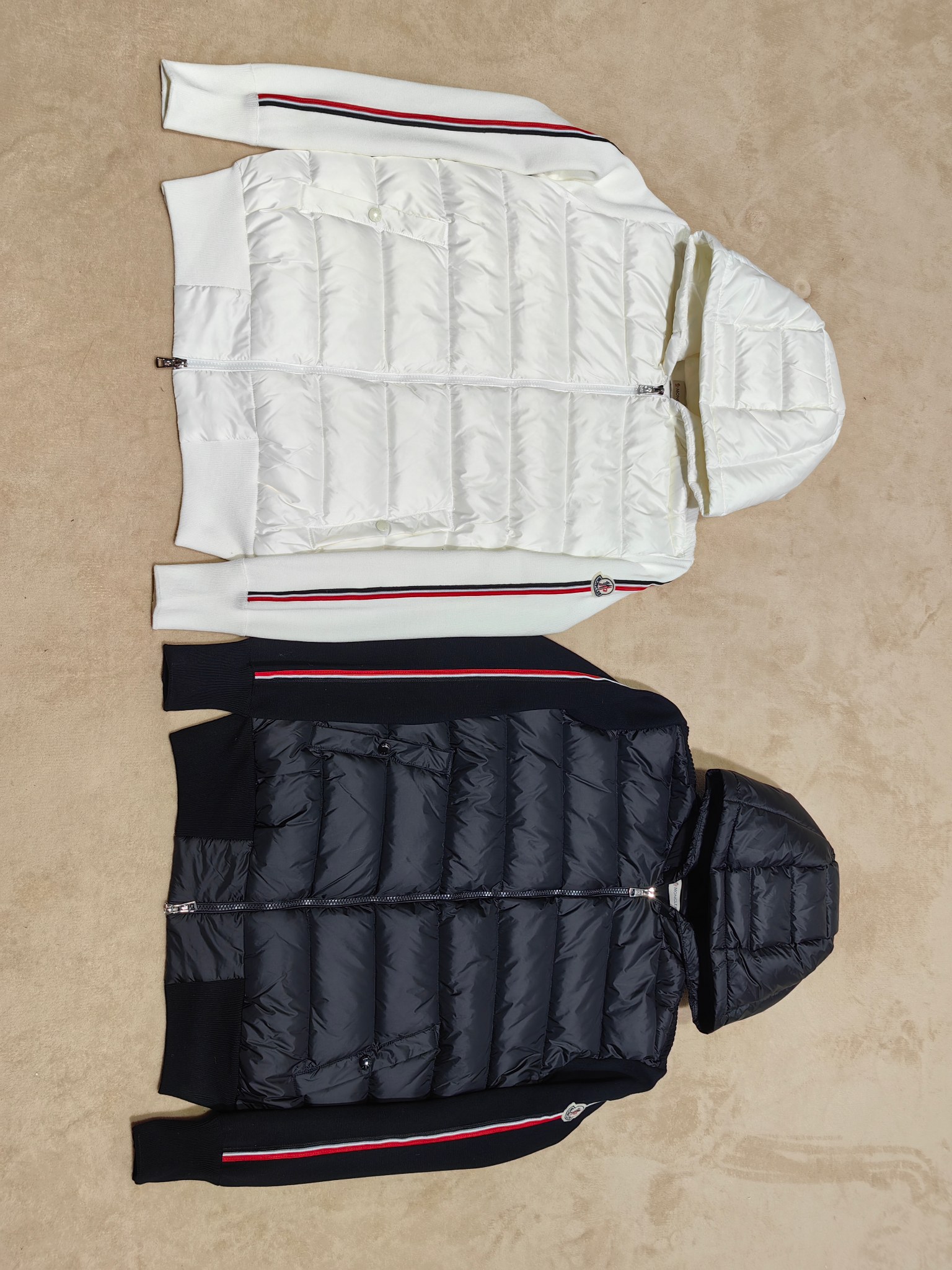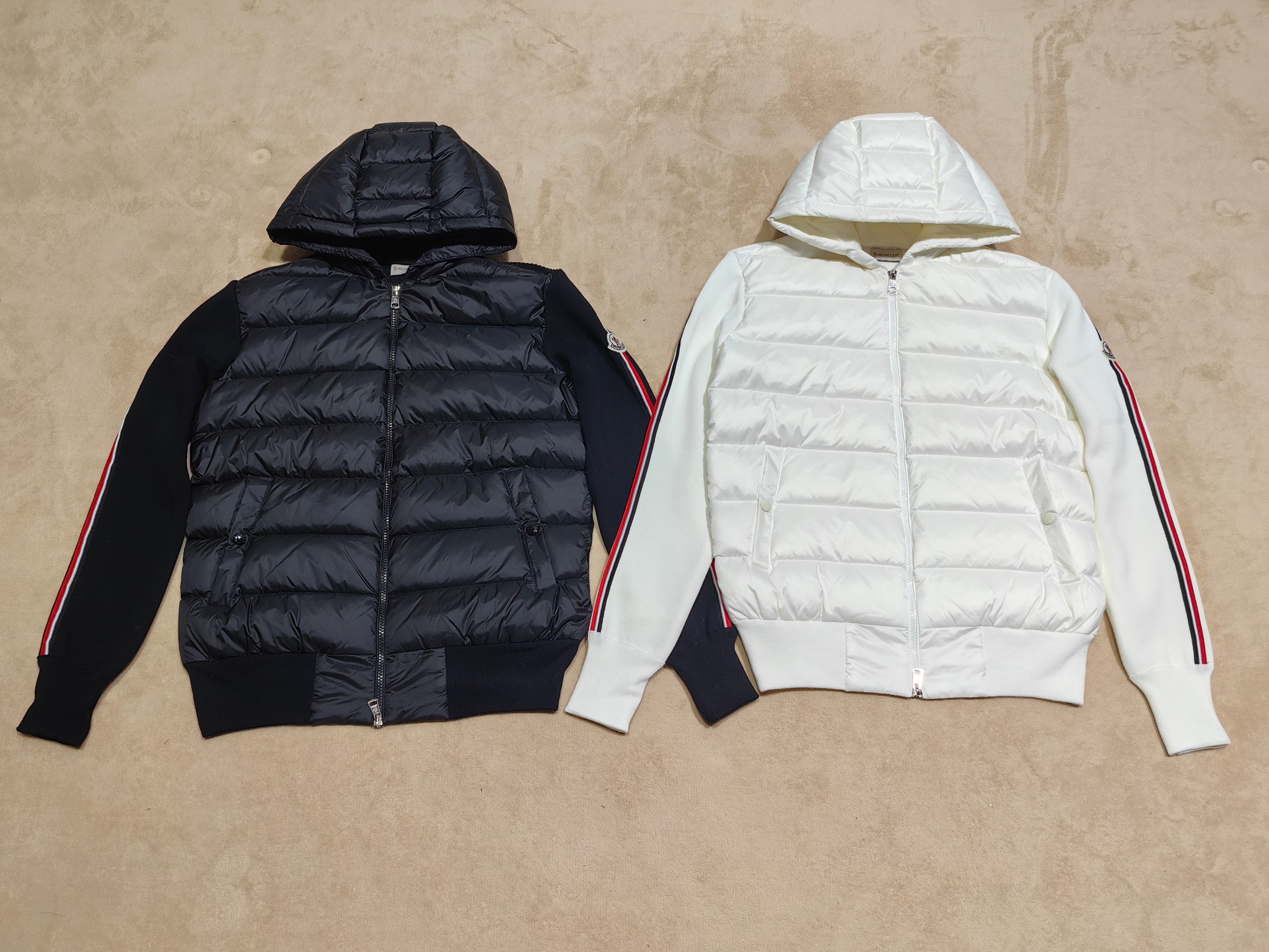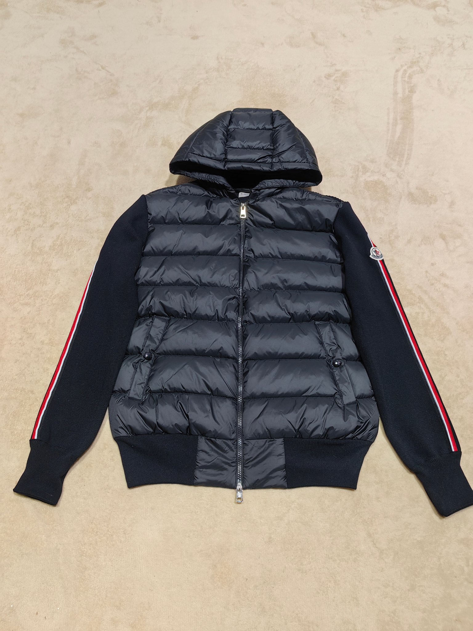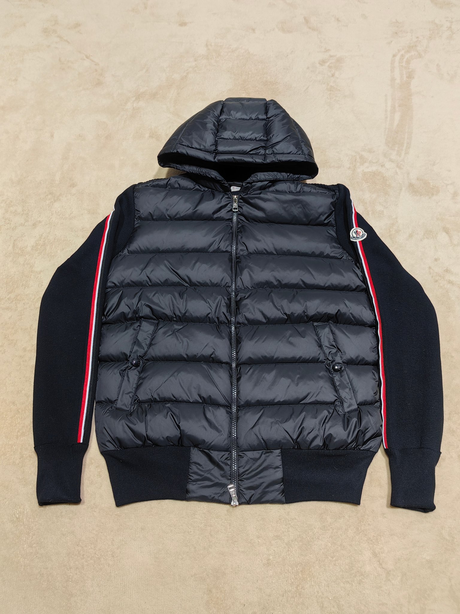 Be the first to review “Moncler Stripe Sleeves Knit Padded Down Jacket Black”