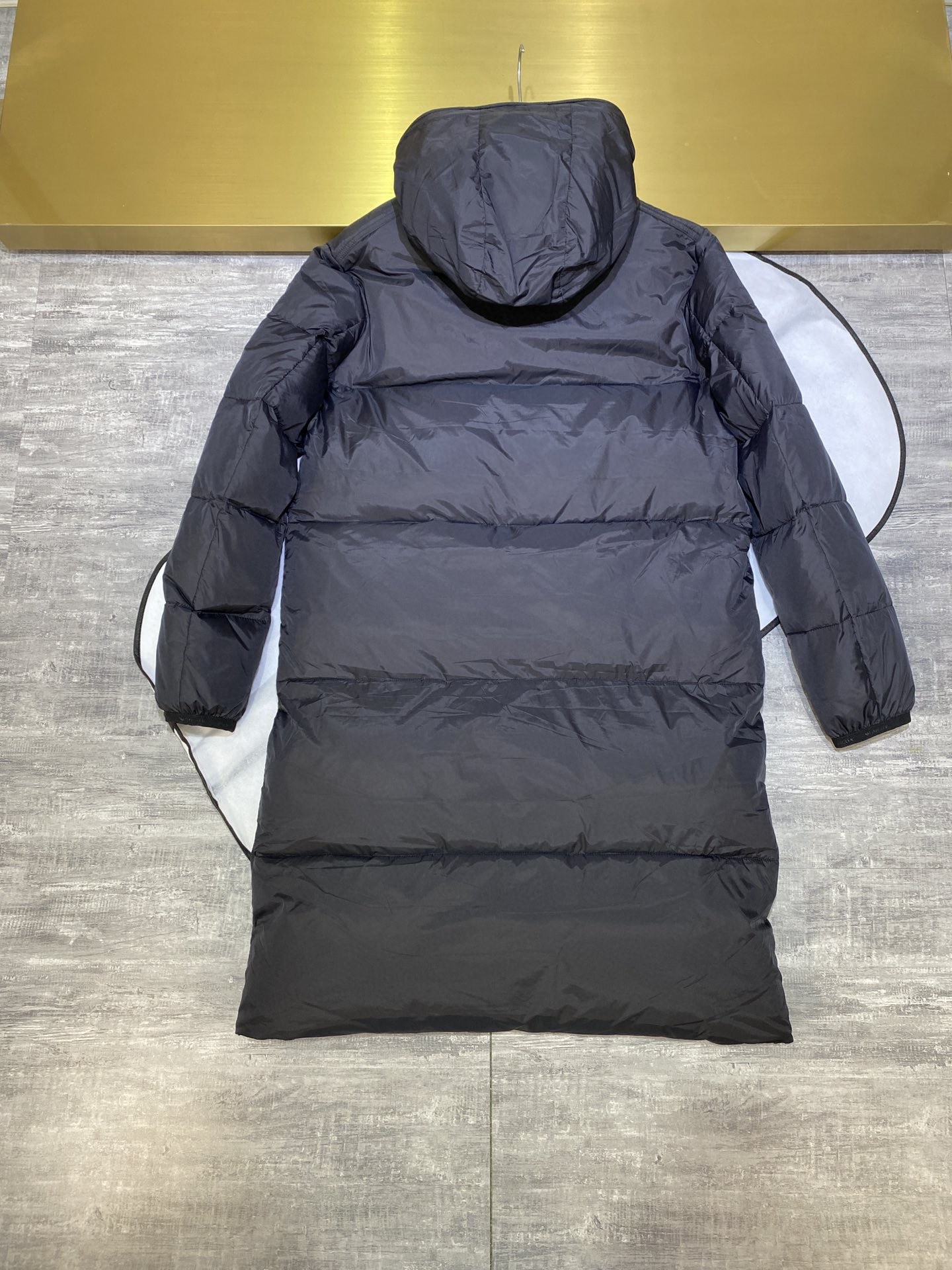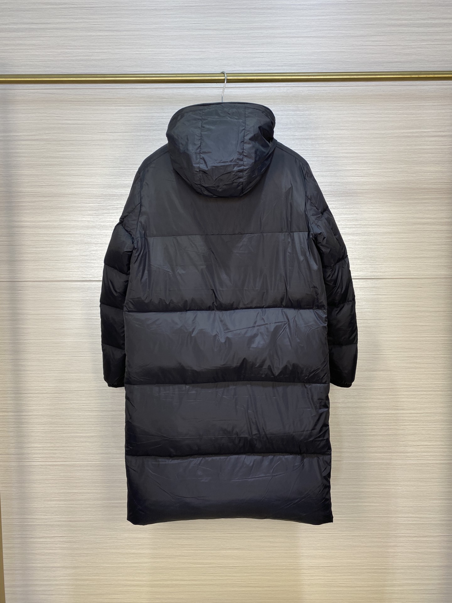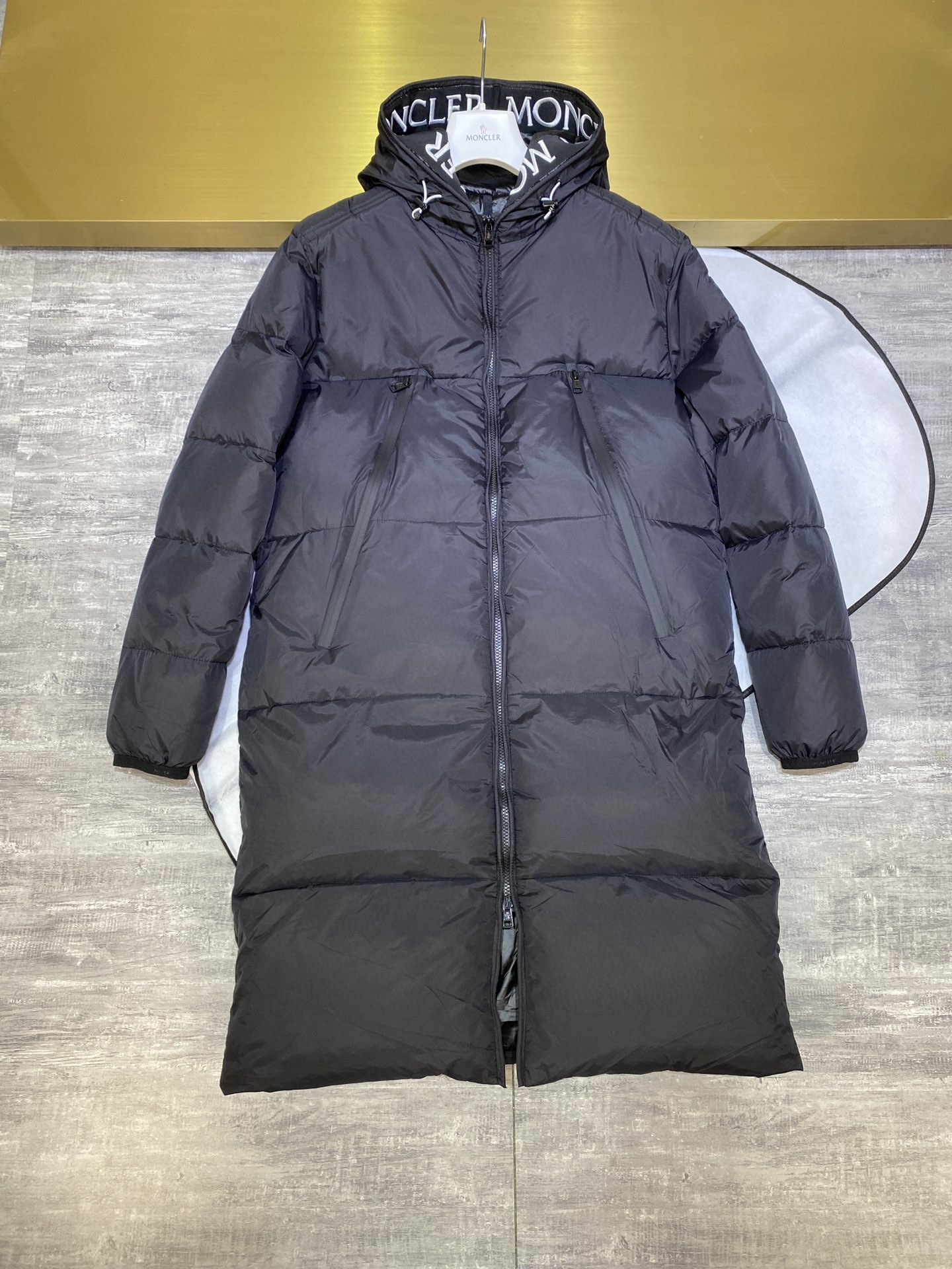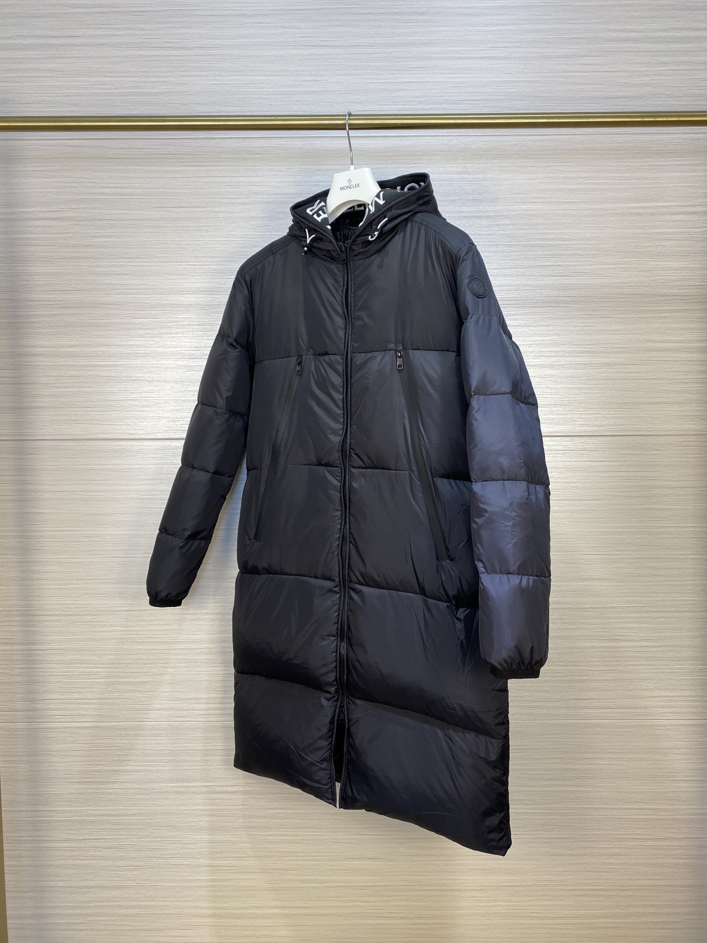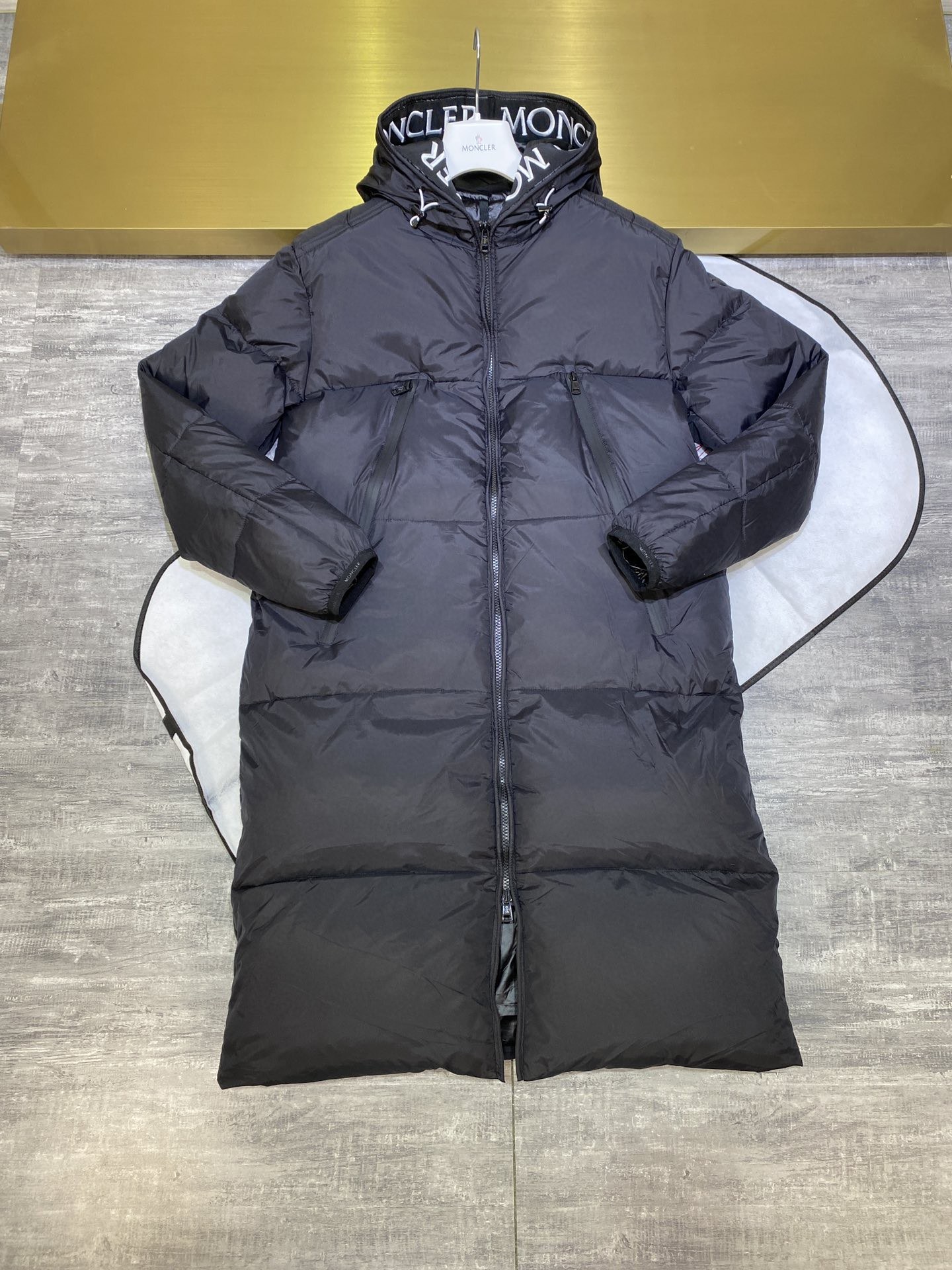 Moncler Unisex Long Down Jacket with Logo Hood Black