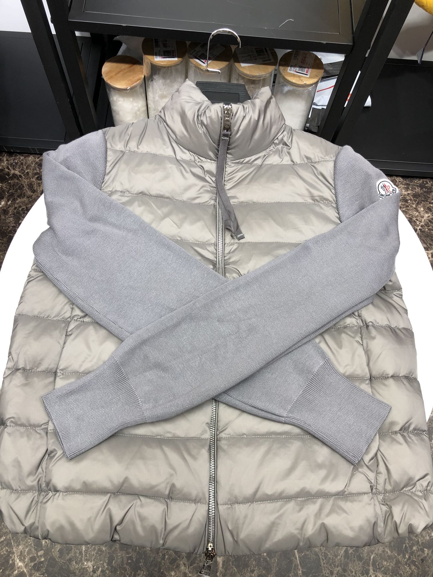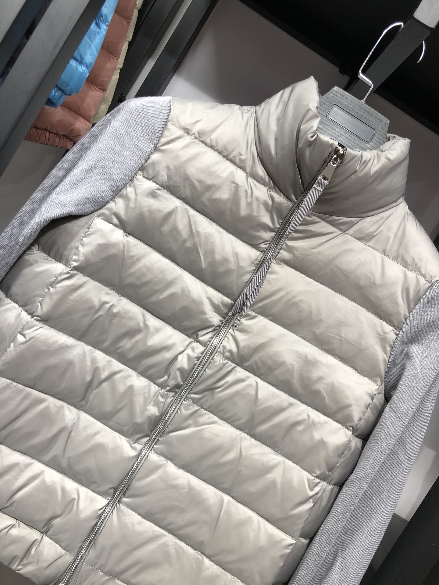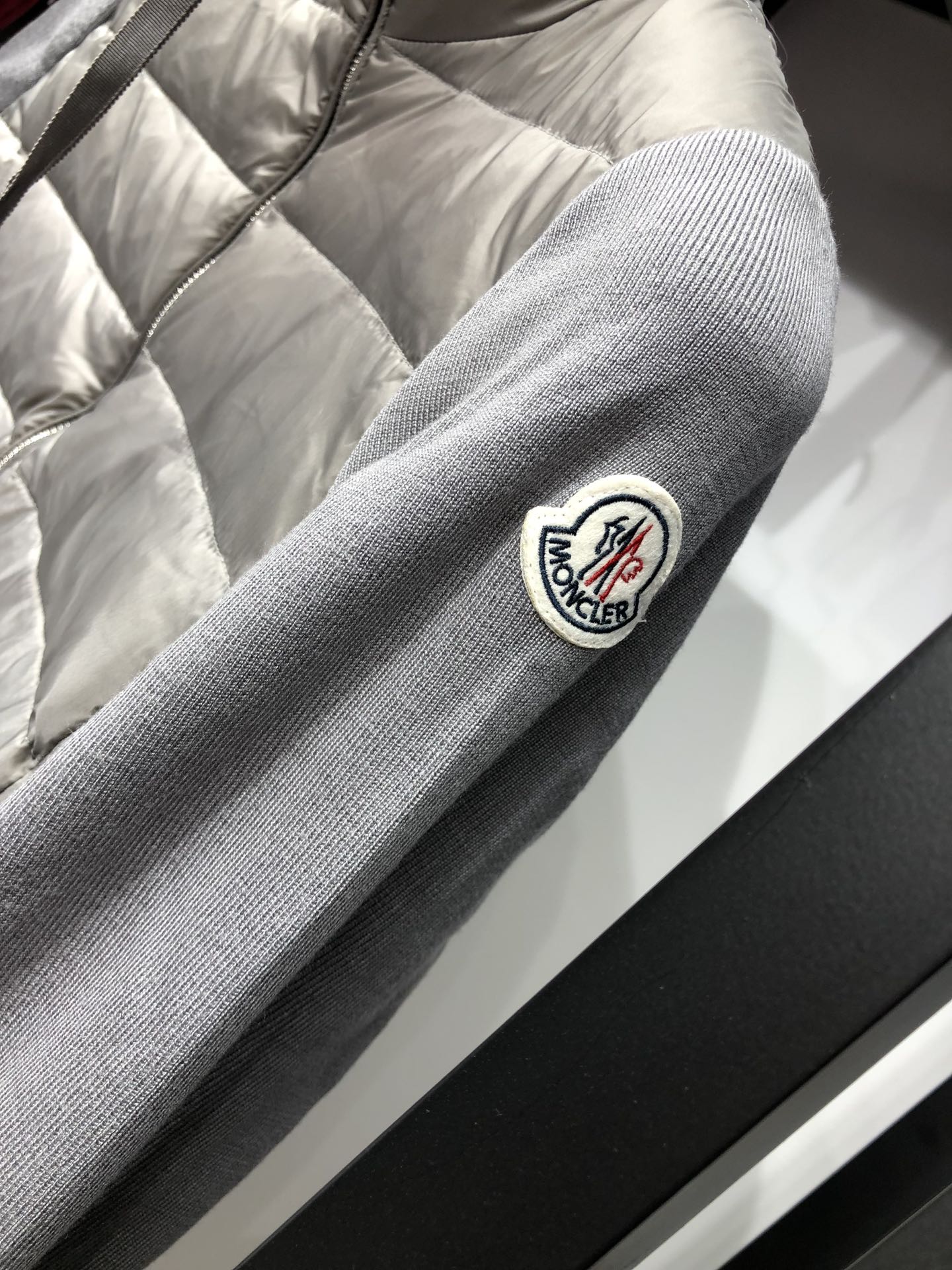 Be the first to review “Moncler warm collar Knit Padded puffer jacket grey”