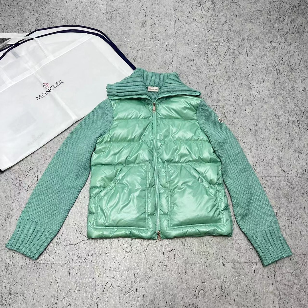 Moncler Women Knit Padded Big Collar Down Jacket Blue