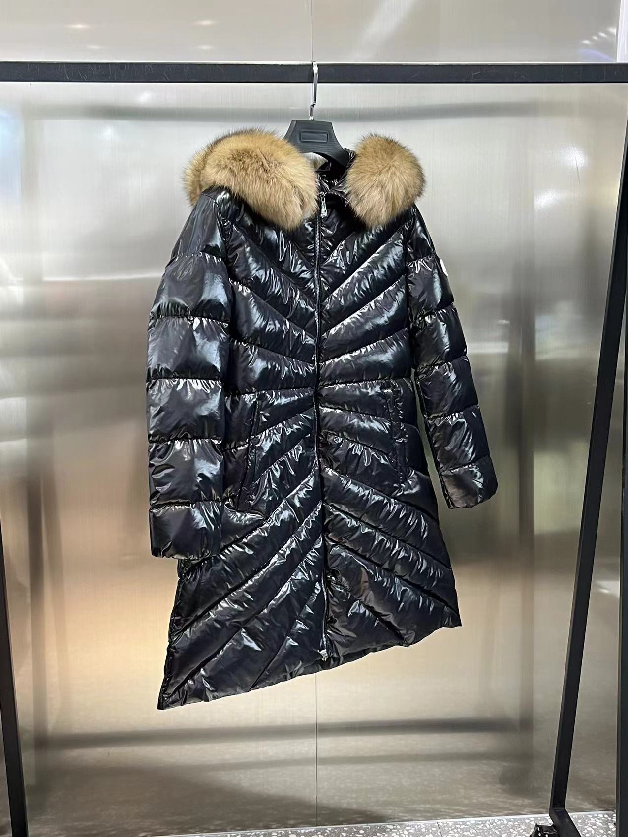 Moncler Women’s Down Jacket, Fox Fur Long Boed Puffer Down Coat Black