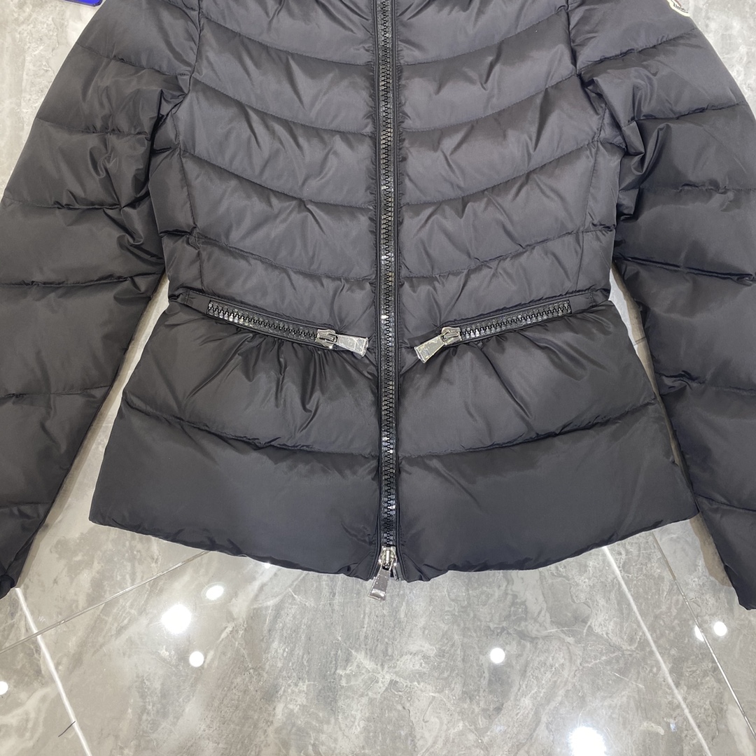 Moncler women’s waist slim fit down jacket matte black