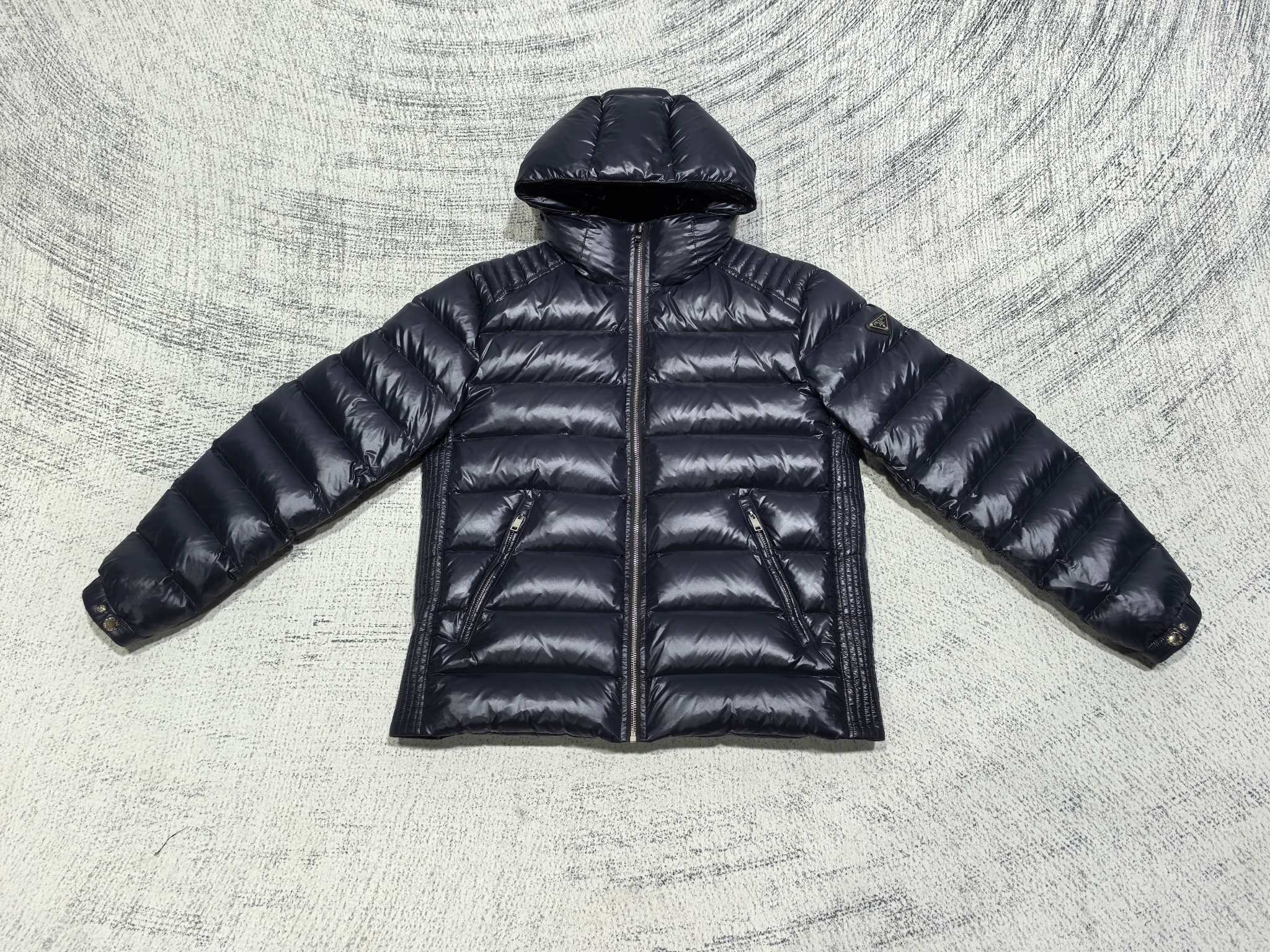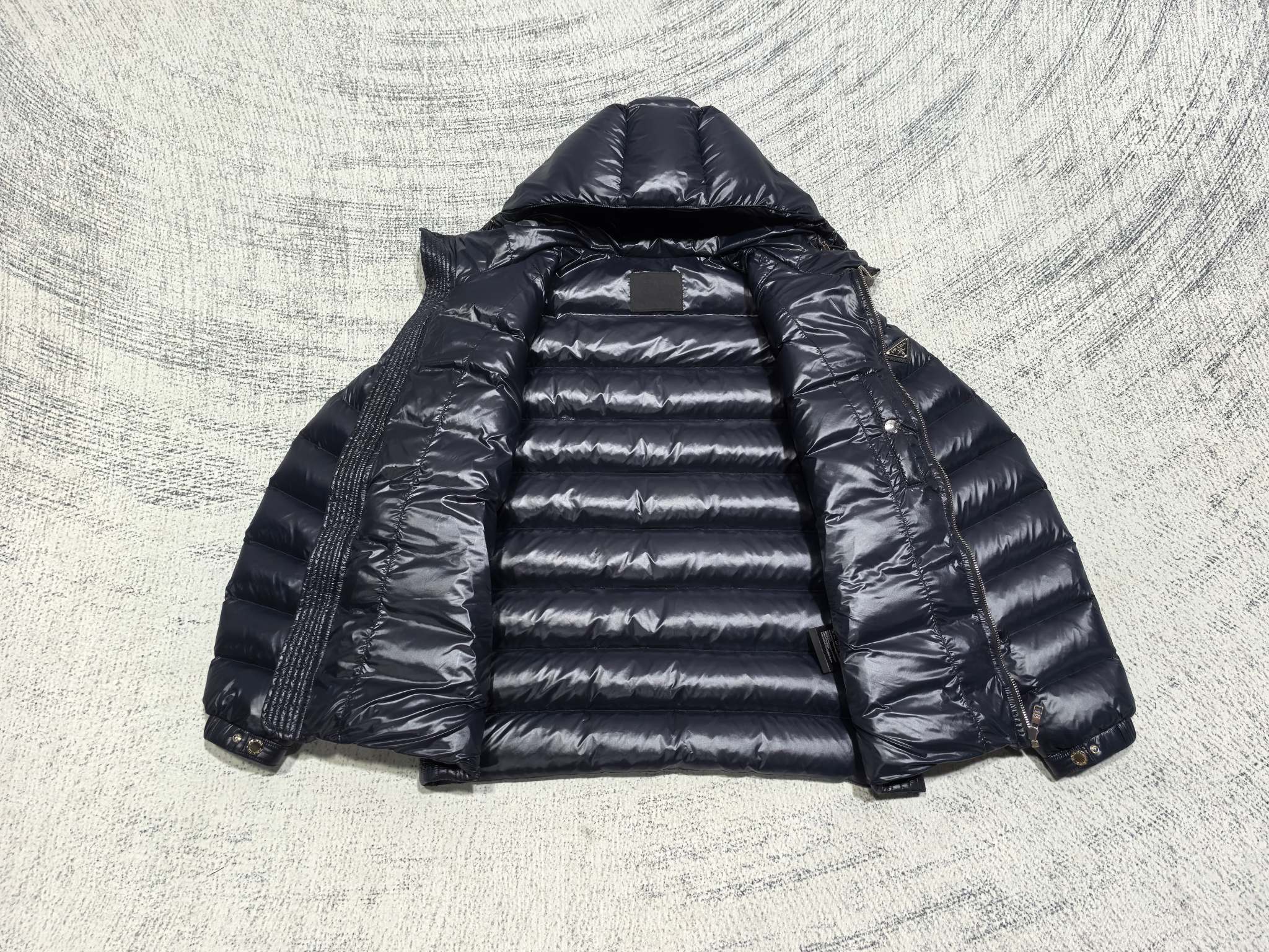Prada Hooded Down Jacket, Puffer Jacket Blue