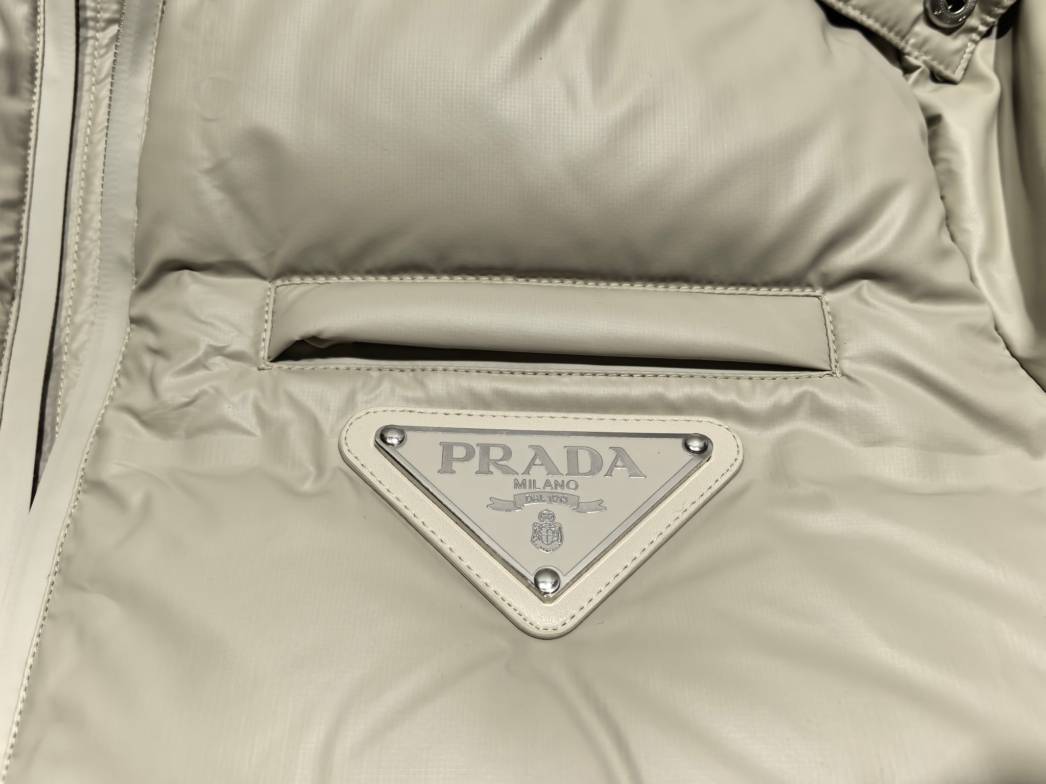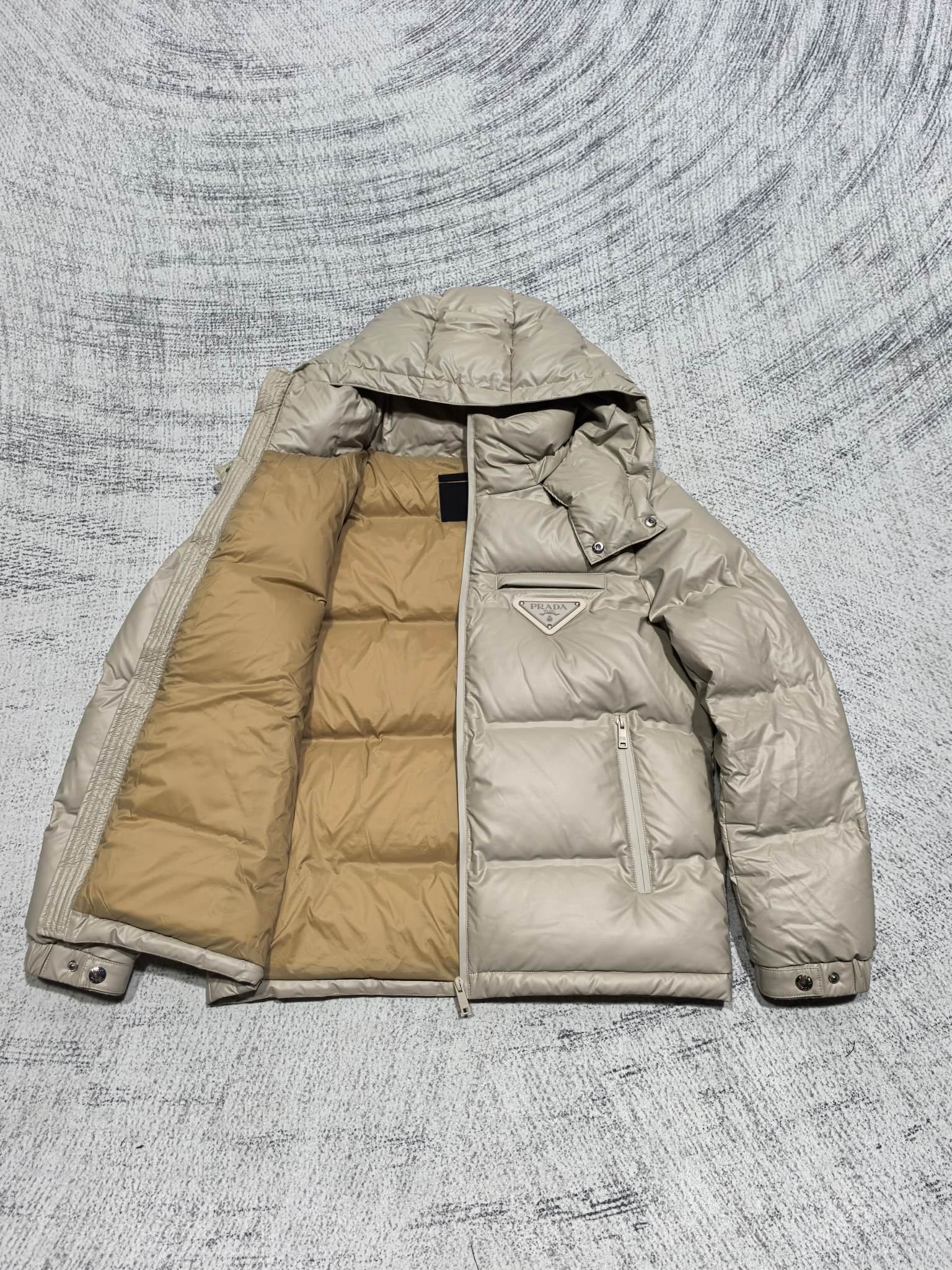 Prada Short Down Jacket 2024, Hooded Puffer Jacket Khaki
