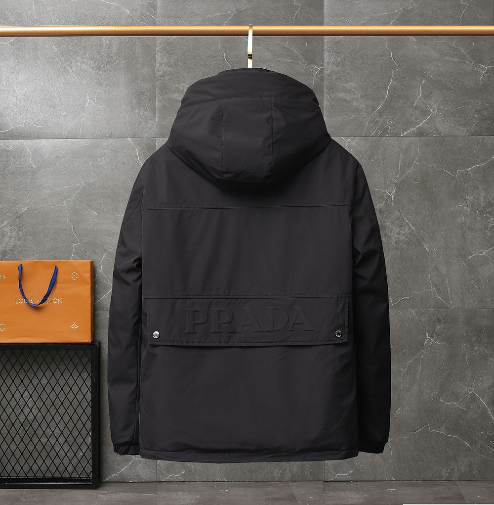 Prada Short Down Jacket for Men , Ski Down Jacket with Hood Black-3