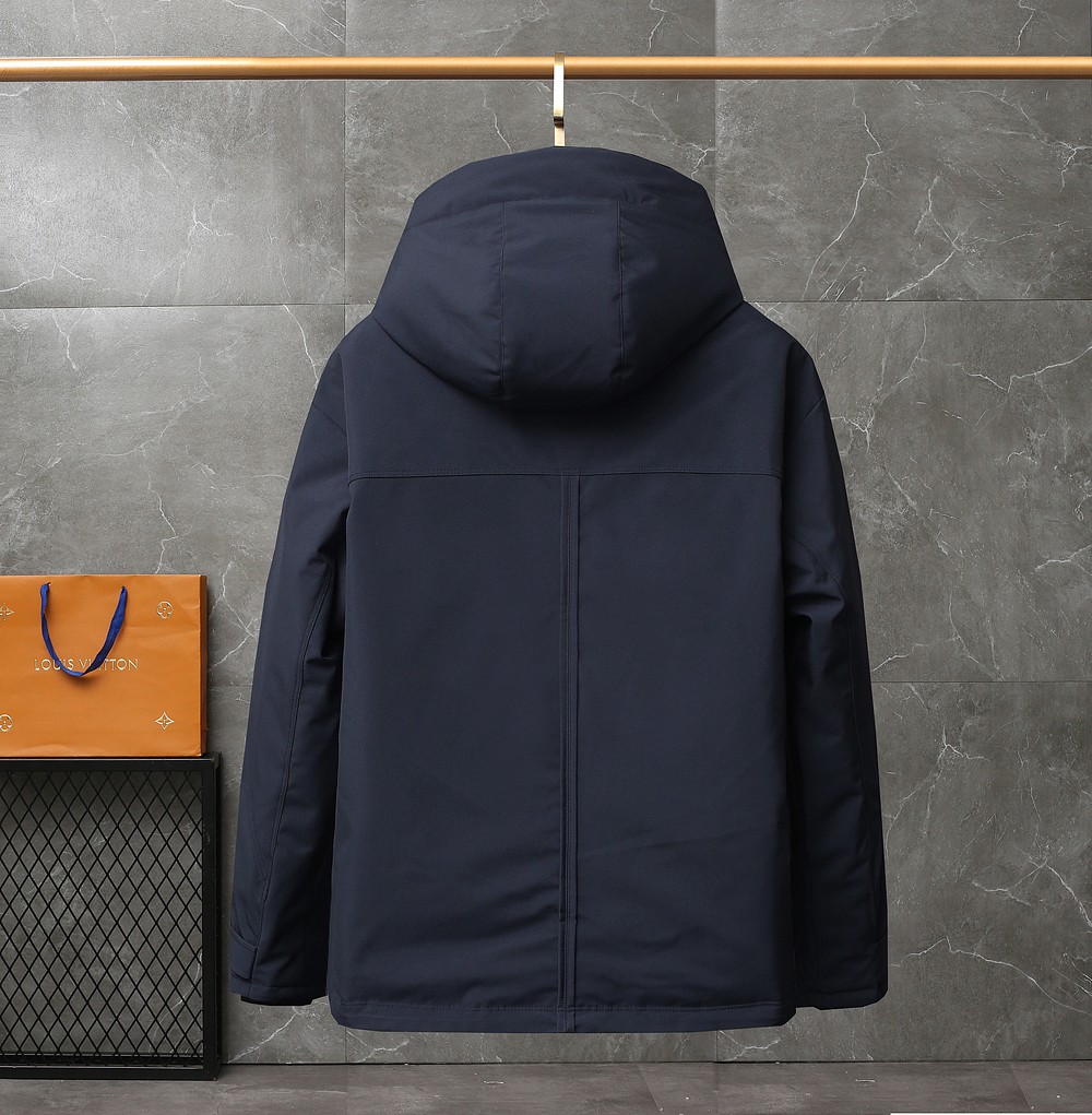 Prada Short Down Jacket for Men , Ski Down Jacket with Hood Dark Blue-2