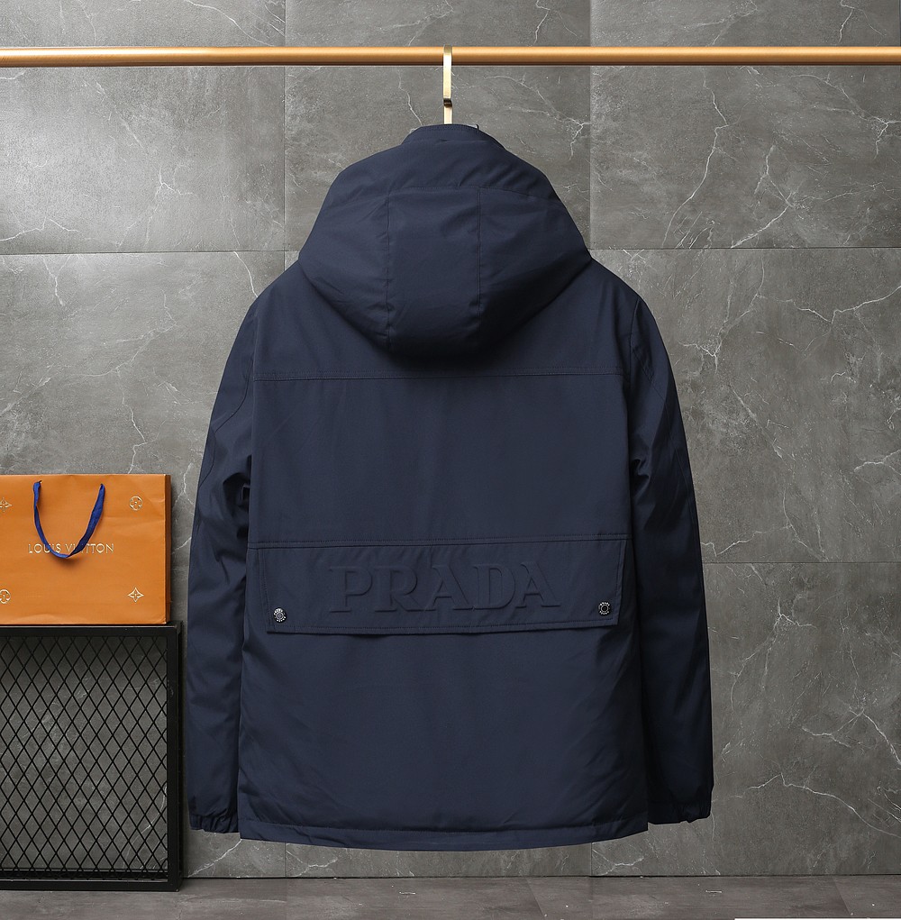 Prada Short Down Jacket for Men , Ski Down Jacket with Hood Dark Blue-3