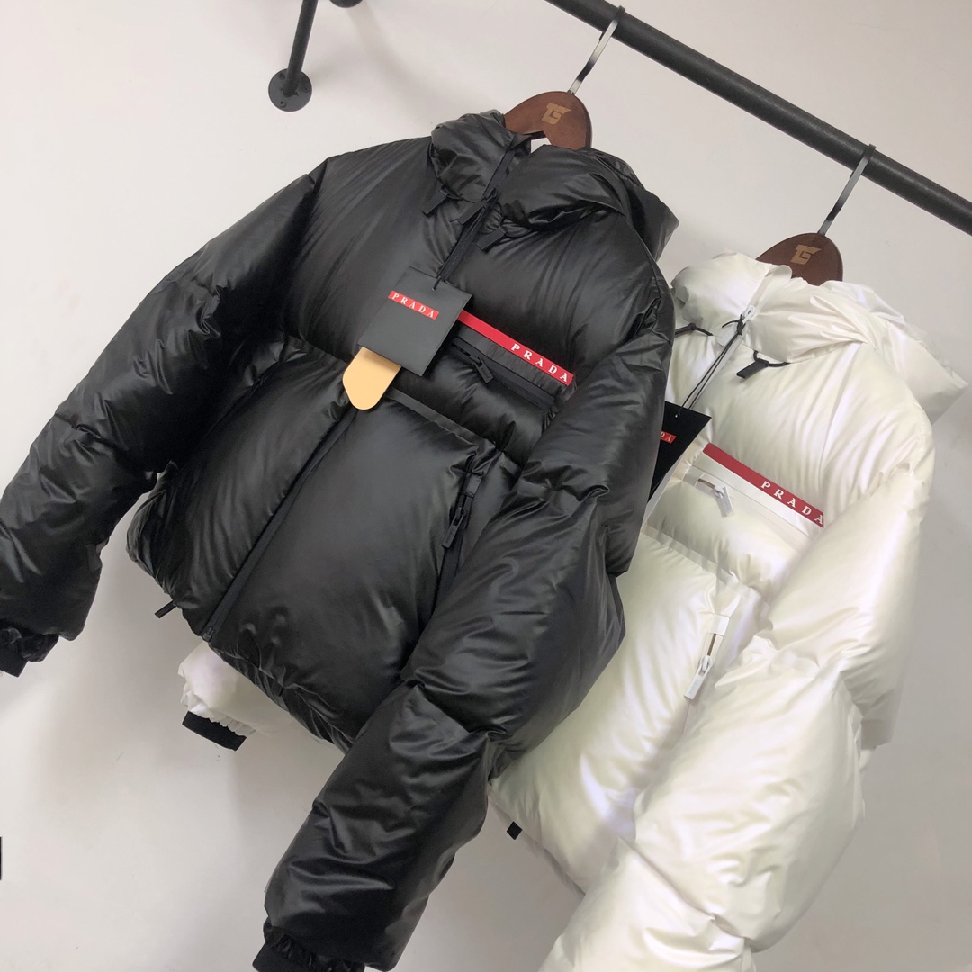 Crafted from premium 100% nylon, the fabric offers excellent waterproof and breathable qualities to shield against outdoor wind and rain, with a soft, smooth, and glossy feel for unbeatable comfort. Filled with 90% down that’s carefully selected for superior loft and resilience, providing warmth that’s beyond compare. Equipped with custom metallic zippers and accessories, the zipper features a high-end heat-sealed finish. The classic red logo patch on the chest, waterproof horizontal zip pocket below the logo, and angled zip pockets on both sides with branded engraved zipper pulls enhance its luxury look. With a double-layer lining and high-density waterproof fabric, it has outstanding wind resistance, loft, and warmth—perfect for high-end styling!