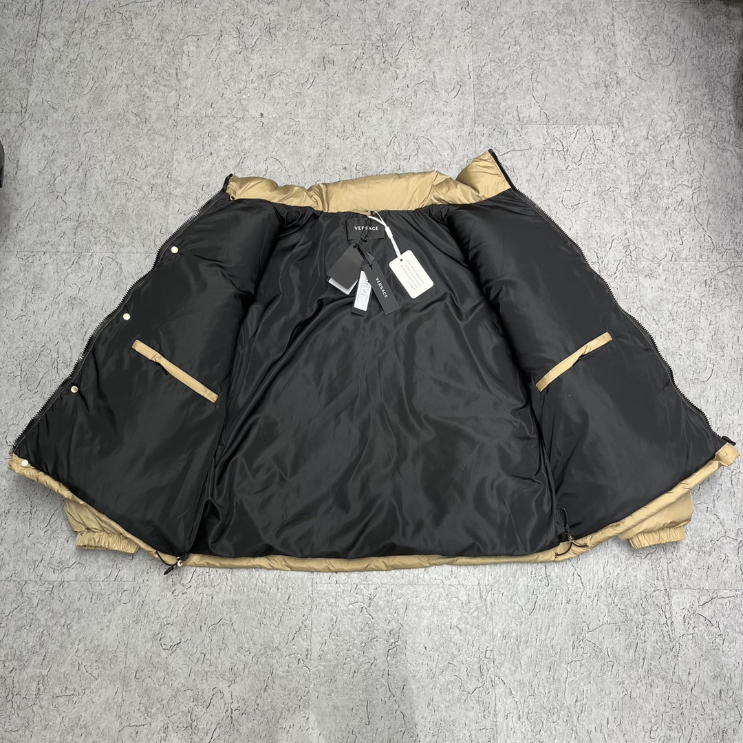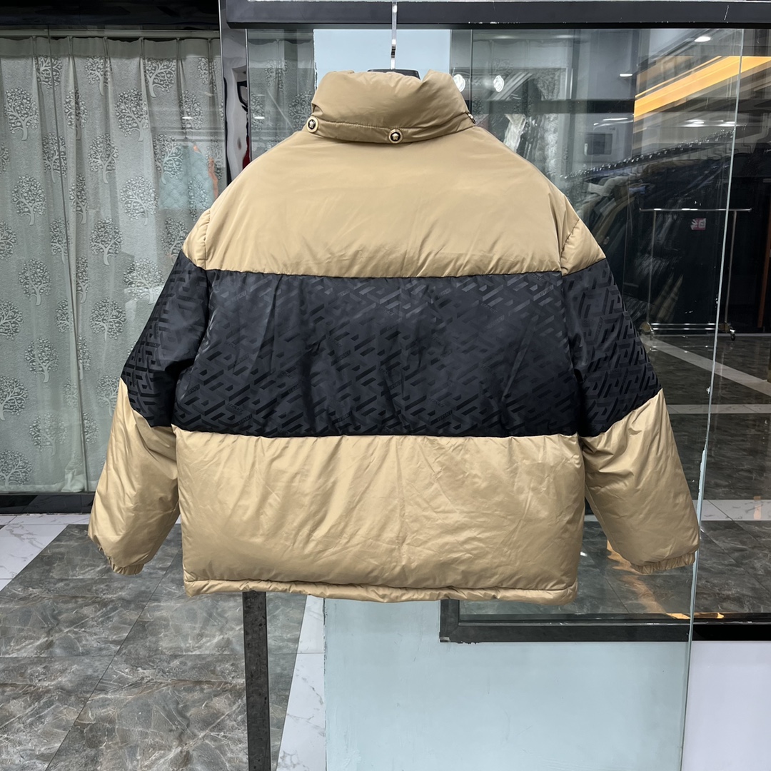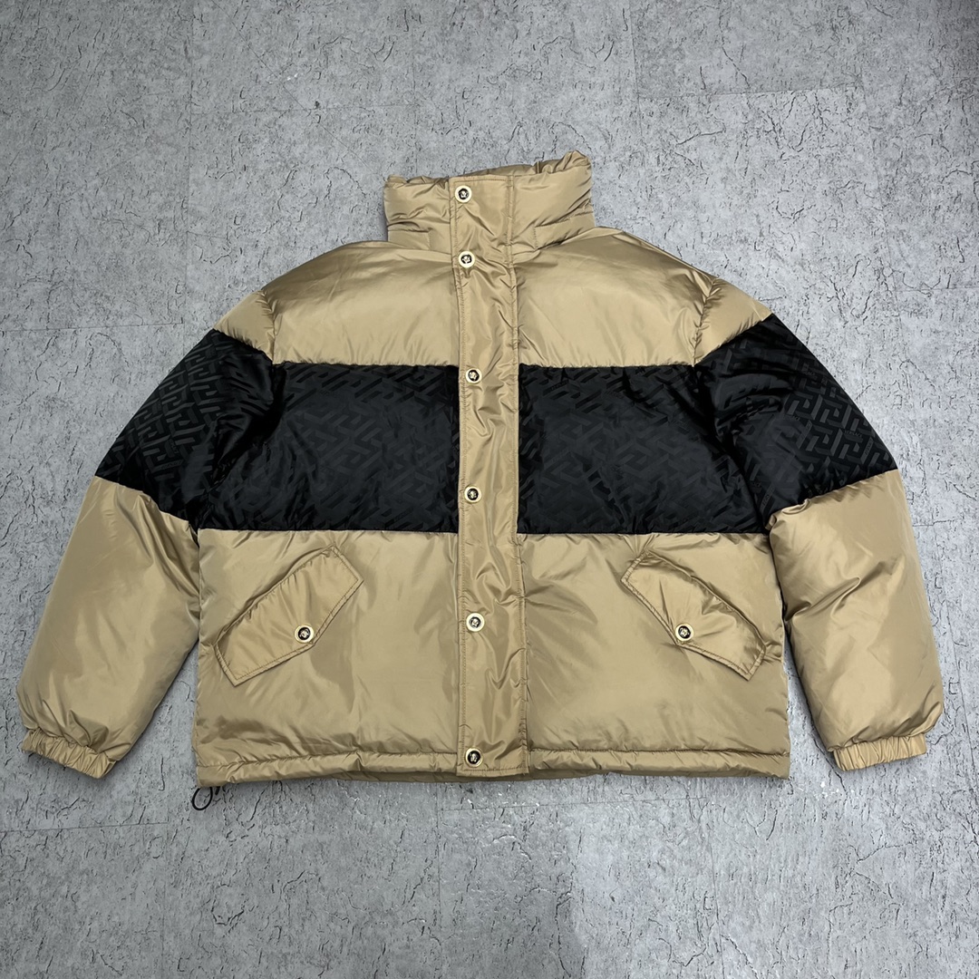 VERSACE La Greca Men’s Short Puffer Down Jacket Brown