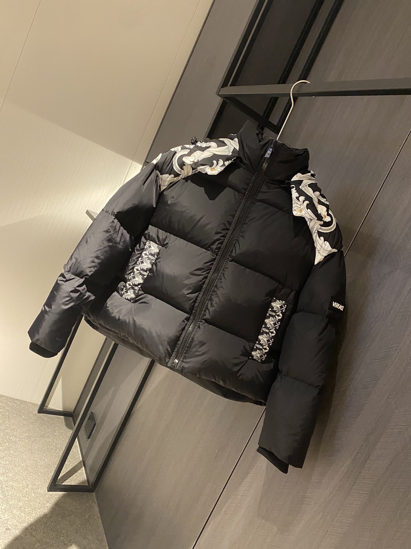 - Details: The arms are adorned with the Versace logo emblem, adding a signature touch.